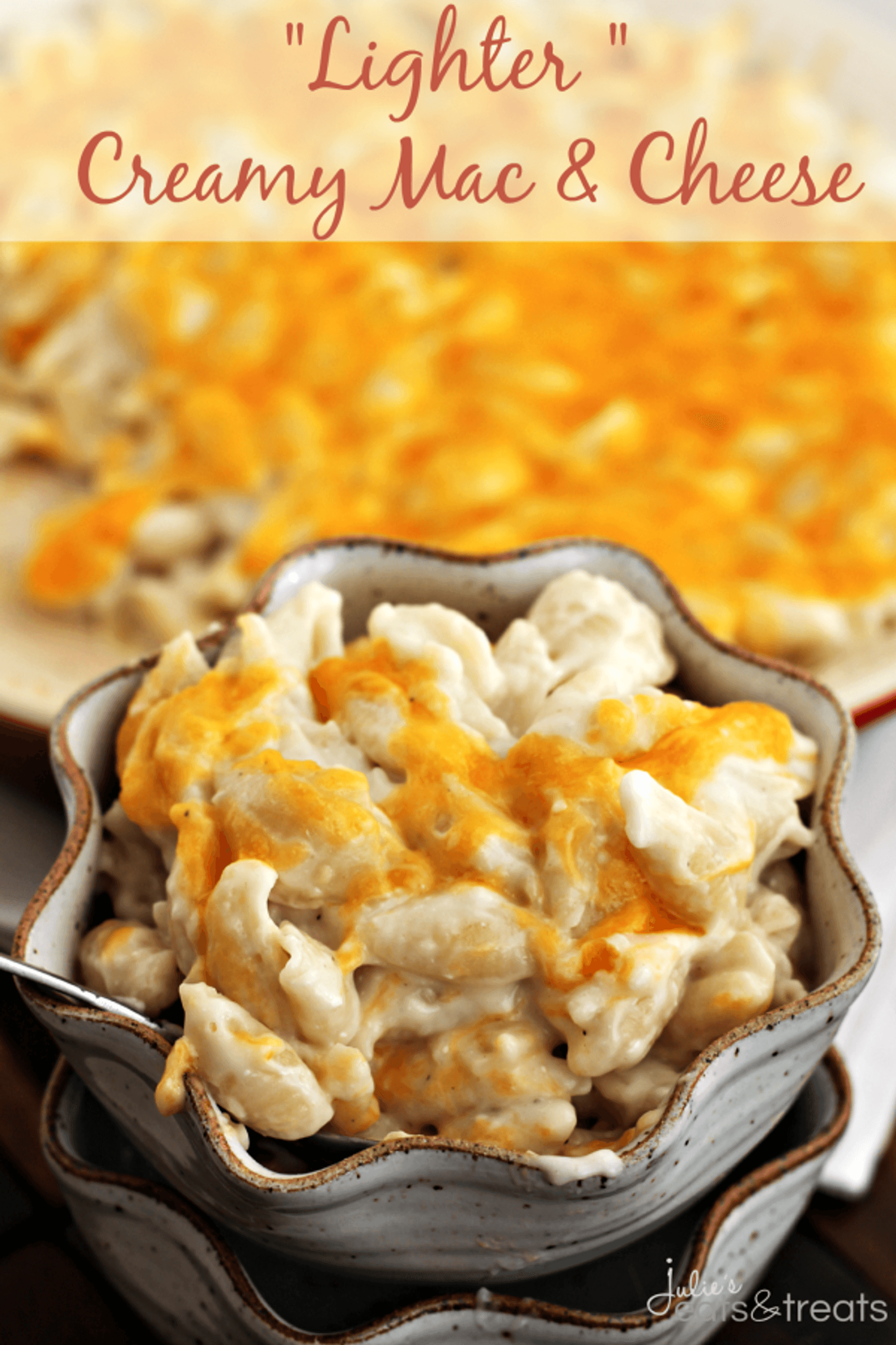 Lighter Creamy Mac & Cheese ~ Creamy homemade Mac & Cheese lightened up but stacked with cheesiness!