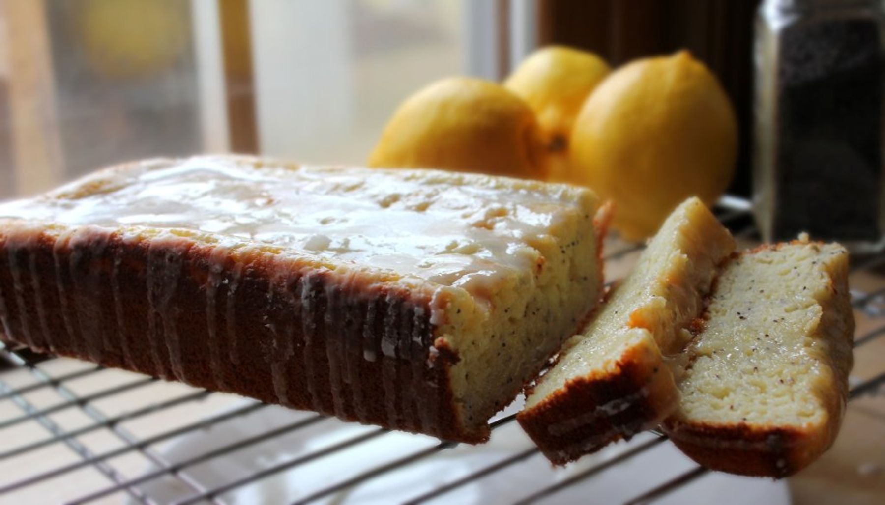 Moist lemon poppy seed bread with a lemon syrup topping and lemon glaze. There is no oil or butter in this bread.