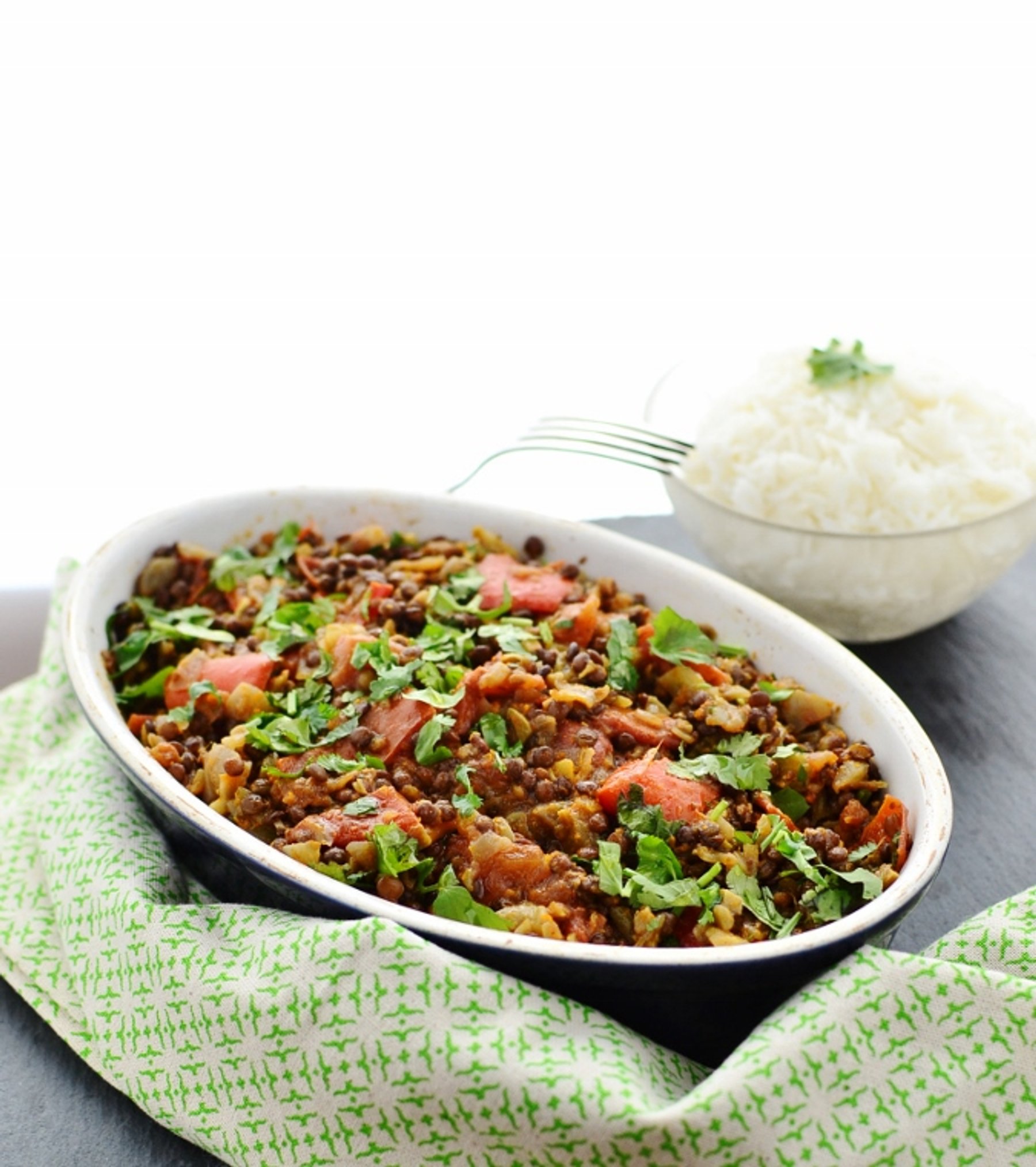 Lightly curried vegan beluga lentils with vegetables