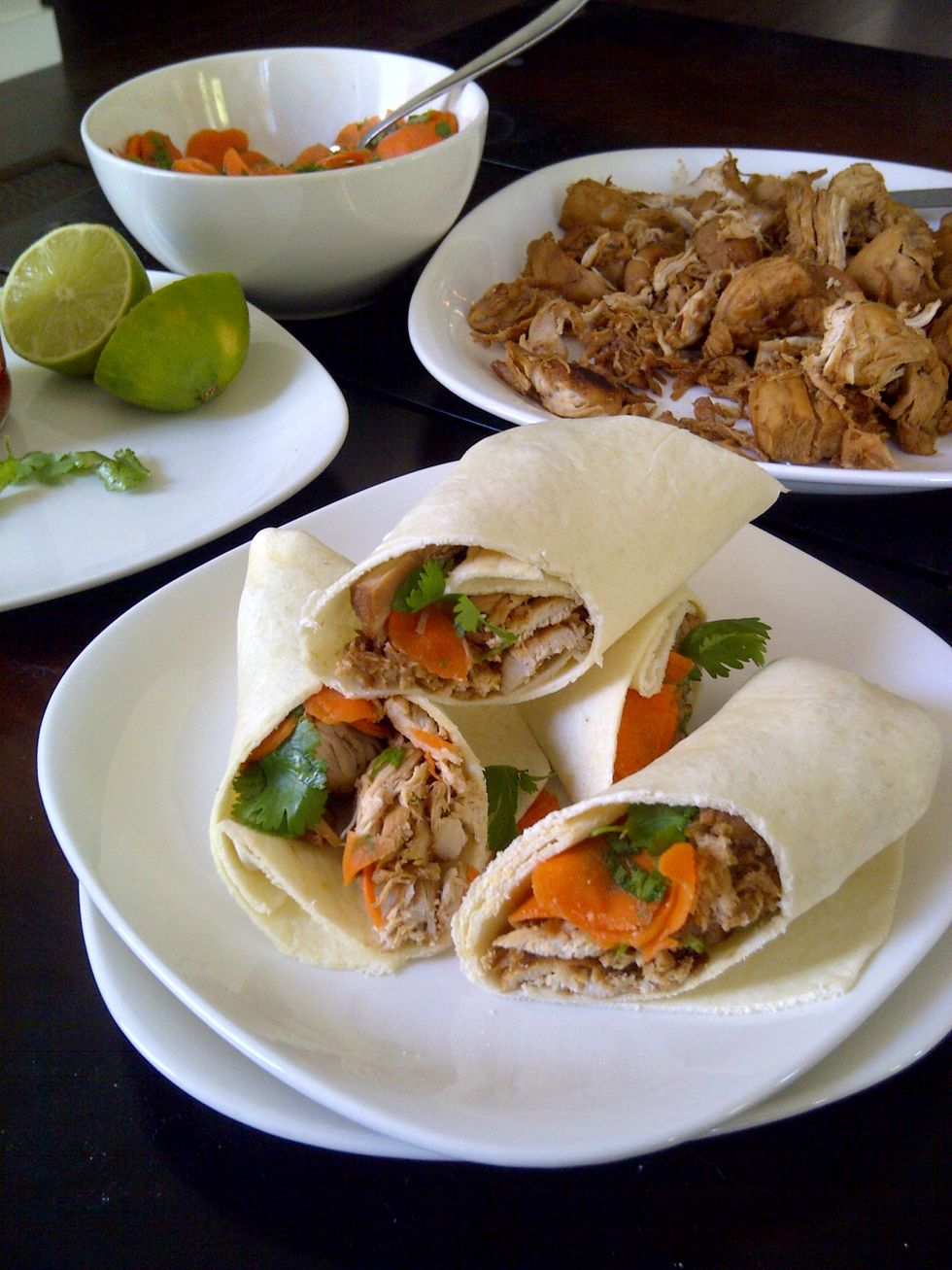 Lime Teriyaki Chicken Wraps w/ Hot Sweet & Sour Cilantro Carrots