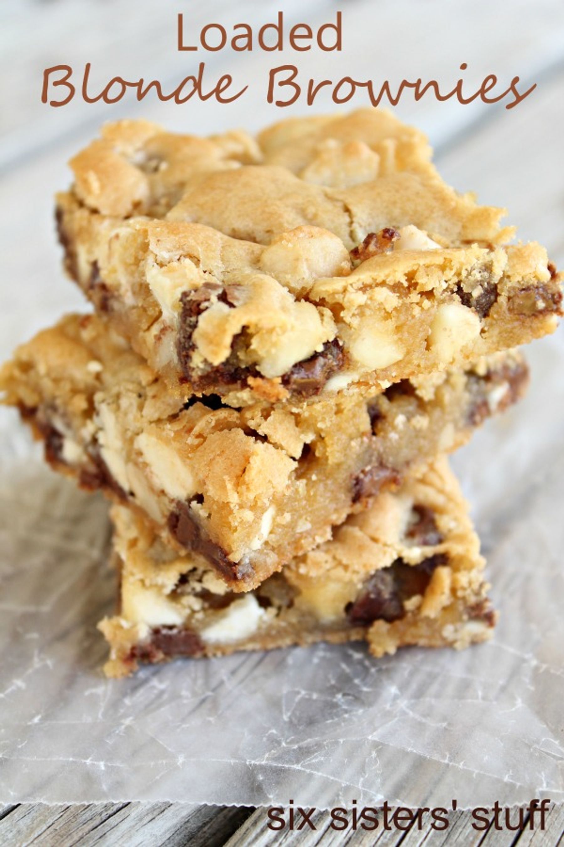 These blonde brownies are definitely loaded! You will love the crunch of the macadamia nuts, and there is something for the chocolate lovers too! One batch and everyone is happy! A soft and chewy dessert that is so easy to make! Be sure to whip up some today!