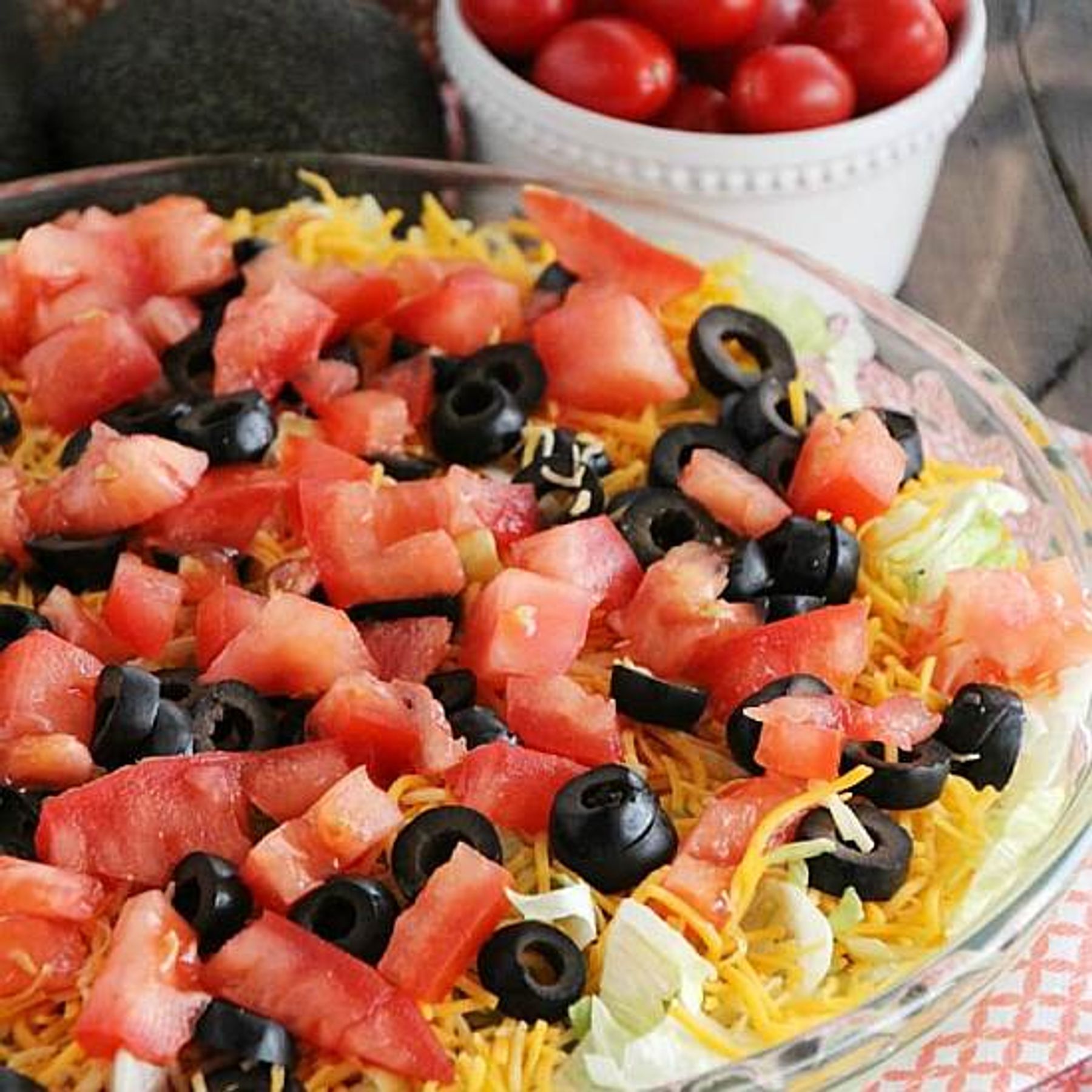 In a medium sized bowl beat together guacamole, cream cheese and Greek yogurt. Spread in a pie plate.
