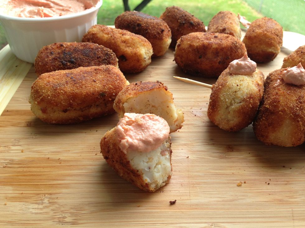 I couldn't figure out what to do with my potatoes that were growing so many eyes, I thought they were turning to aliens. I wanted to use them right away, I couldn't wait until dinnertime. Then, I thought I would turn them into croquettes. With a crunchy outside and soft inside, these little buggers are perfect for a dinner party where baked or simple mashed potatoes won't do!