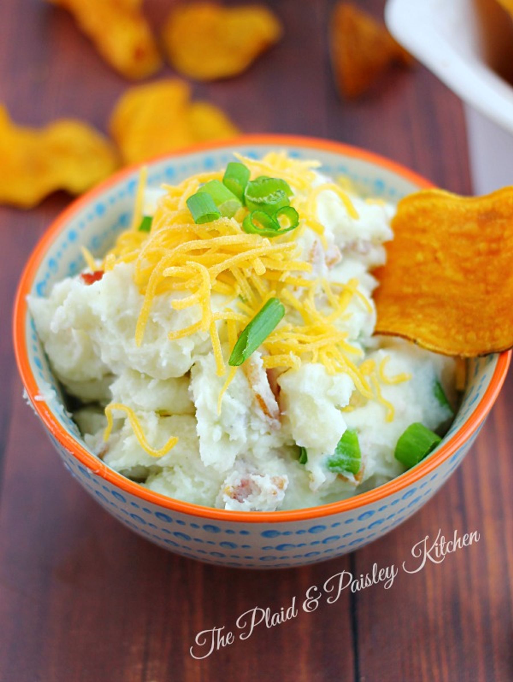 Loaded Baked Potato Dip is sure to please a crowd. Perfect for Parties or just a quick afternoon snack. Full of cheese and bacon and everything you love!