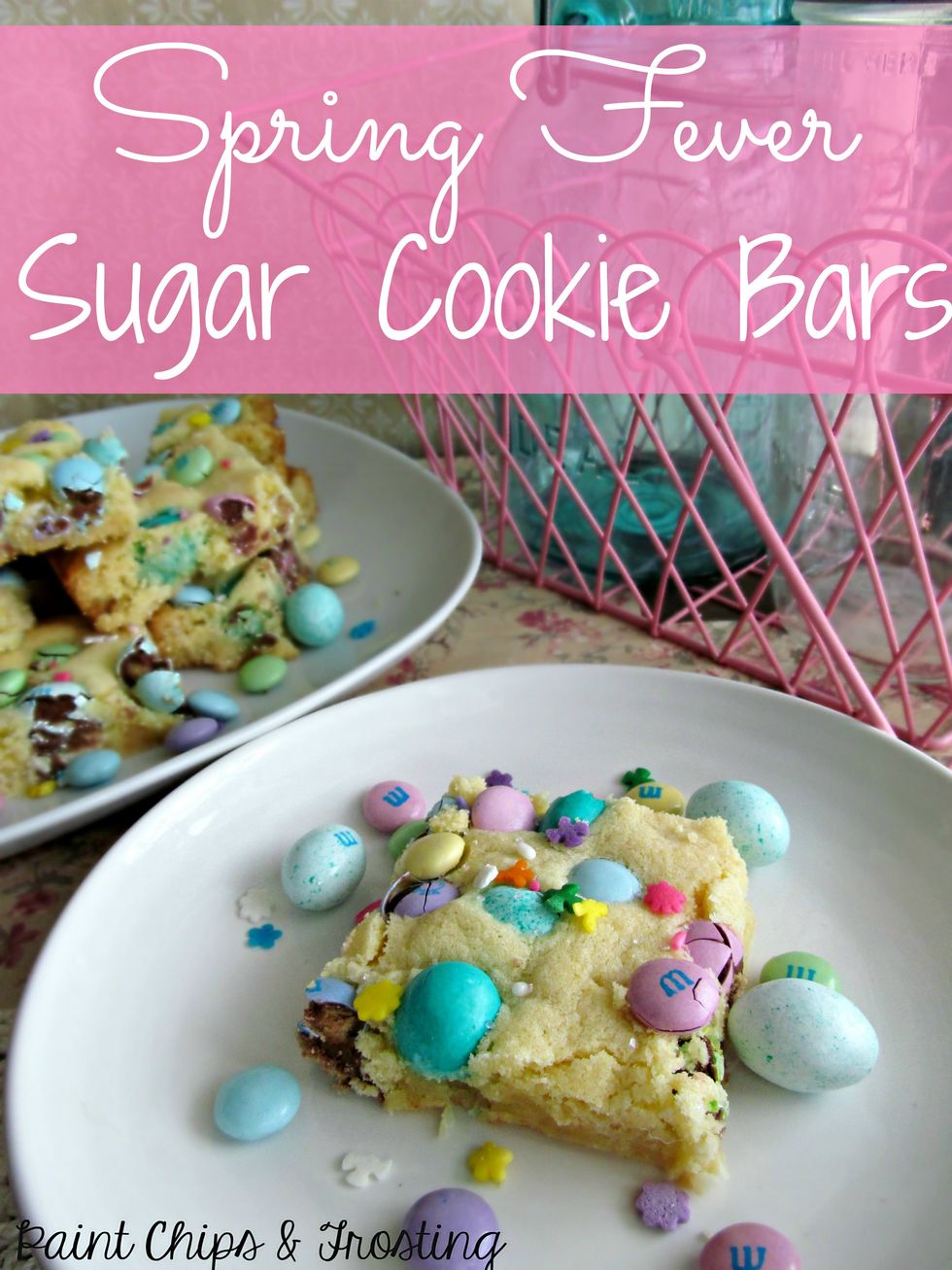 Sugar Cookie Bars loaded with sprinkles and pastel m&ms! They're so delicious and can be adapted to any occasion by switching out the m&ms and sprinkles!