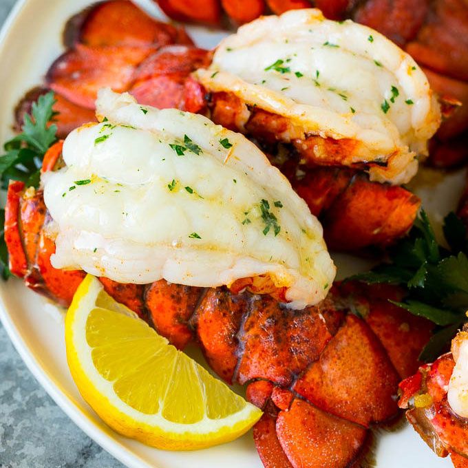 These lobster tails are coated in garlic butter then broiled to tender perfection. A super simple, yet elegant way to enjoy lobster in the comfort of your own home!