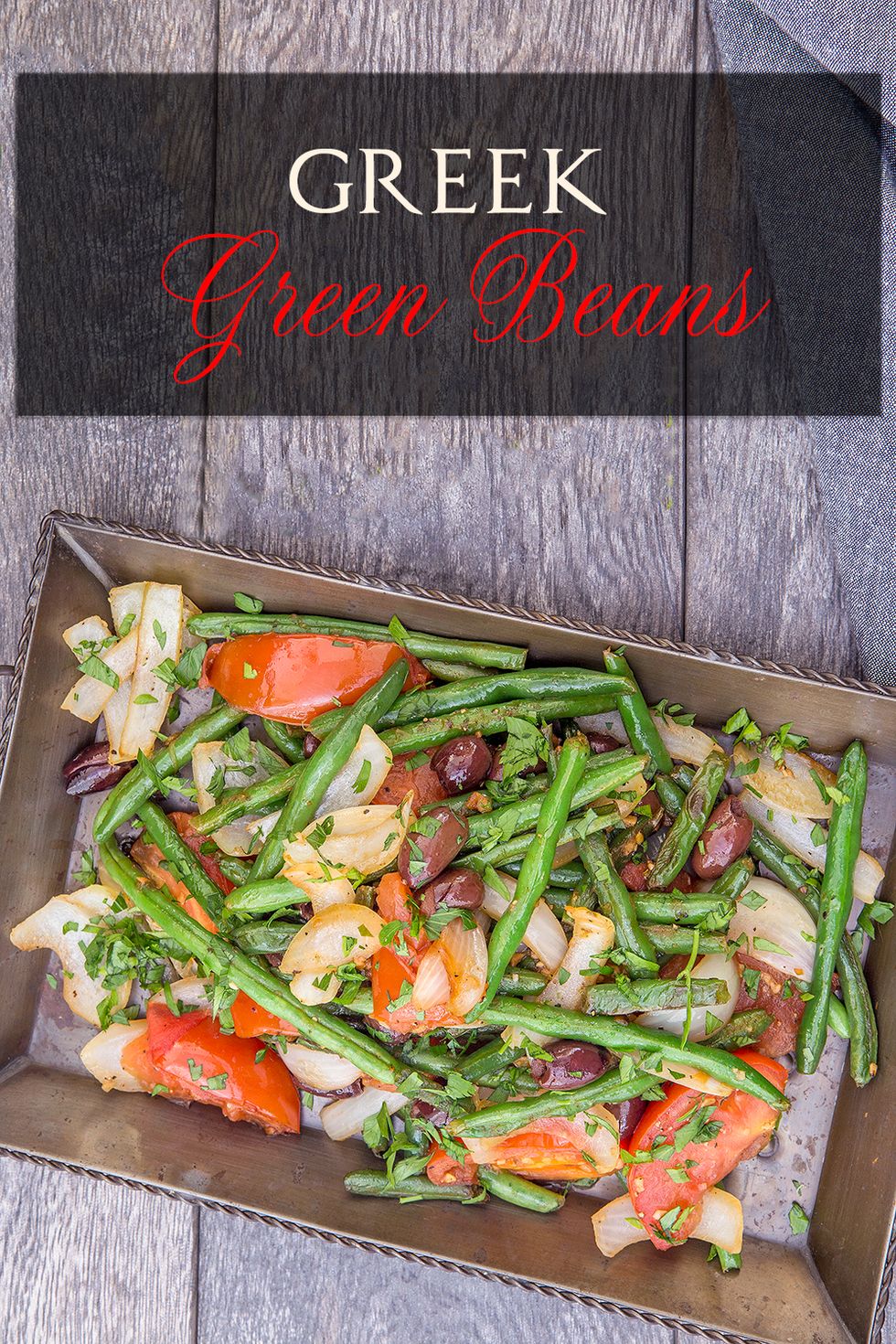 A rich and delicious vegetable medley with garlic, Kalamata olives, and olive oil. These Greek green beans are can be served as a healthy side or main dish.