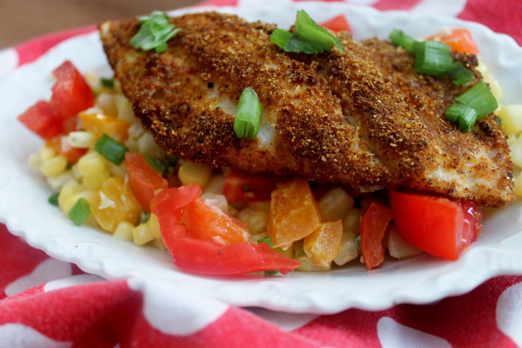 This veggie-packed sweet corn side dish pairs excellently with my crusty blackened catfish. Make tonight a Cajun night!