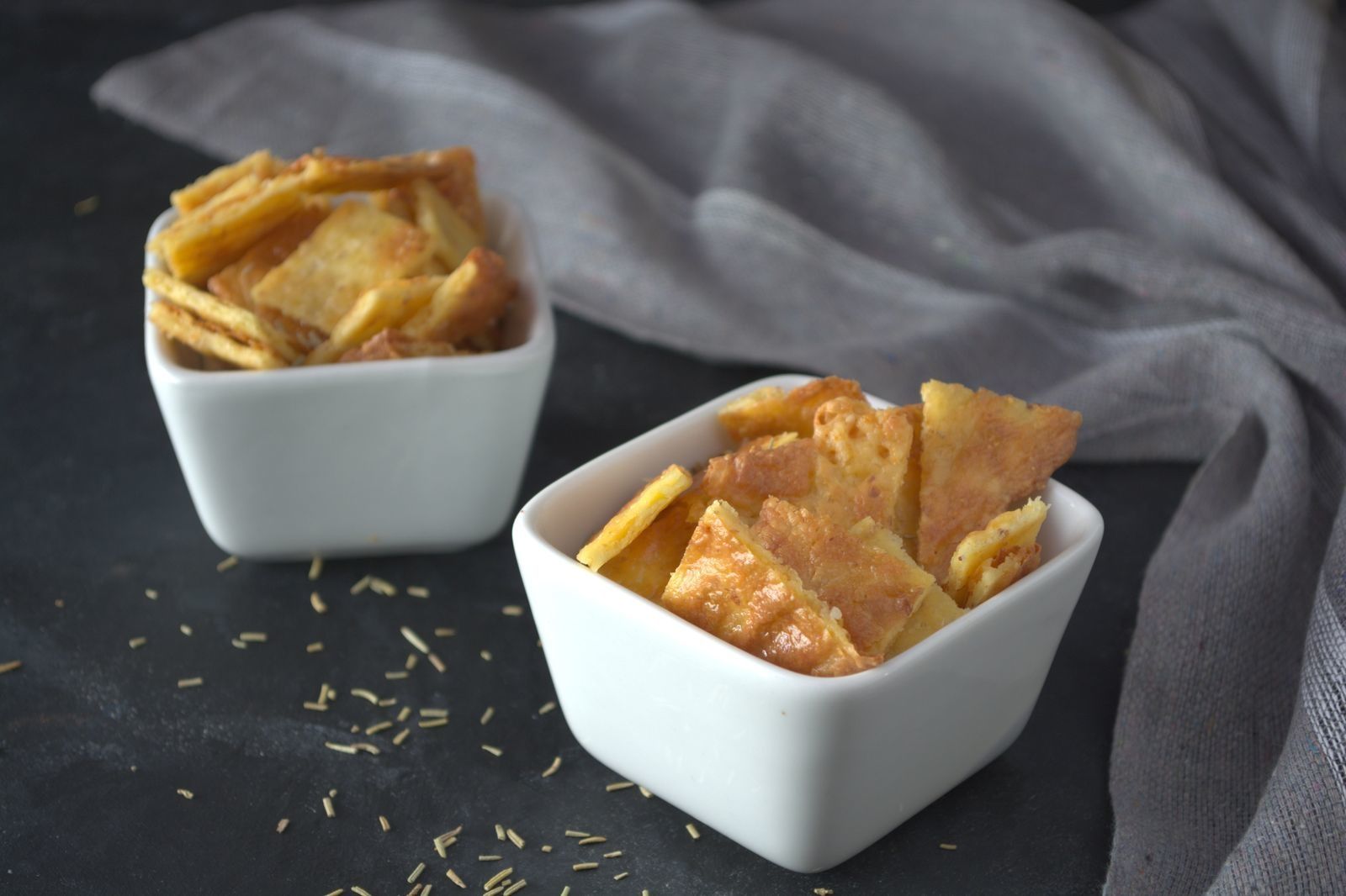 If you're a fan of Cheese Nips and Cheez-Its, then you're also going to love these low-carb cheese crackers. They taste scrumptiously cheesy with a touch of herbal goodness from the added rosemary. At only 1.2g net carb per serving (4 crackers), you can eat a whole batch guilt-free.