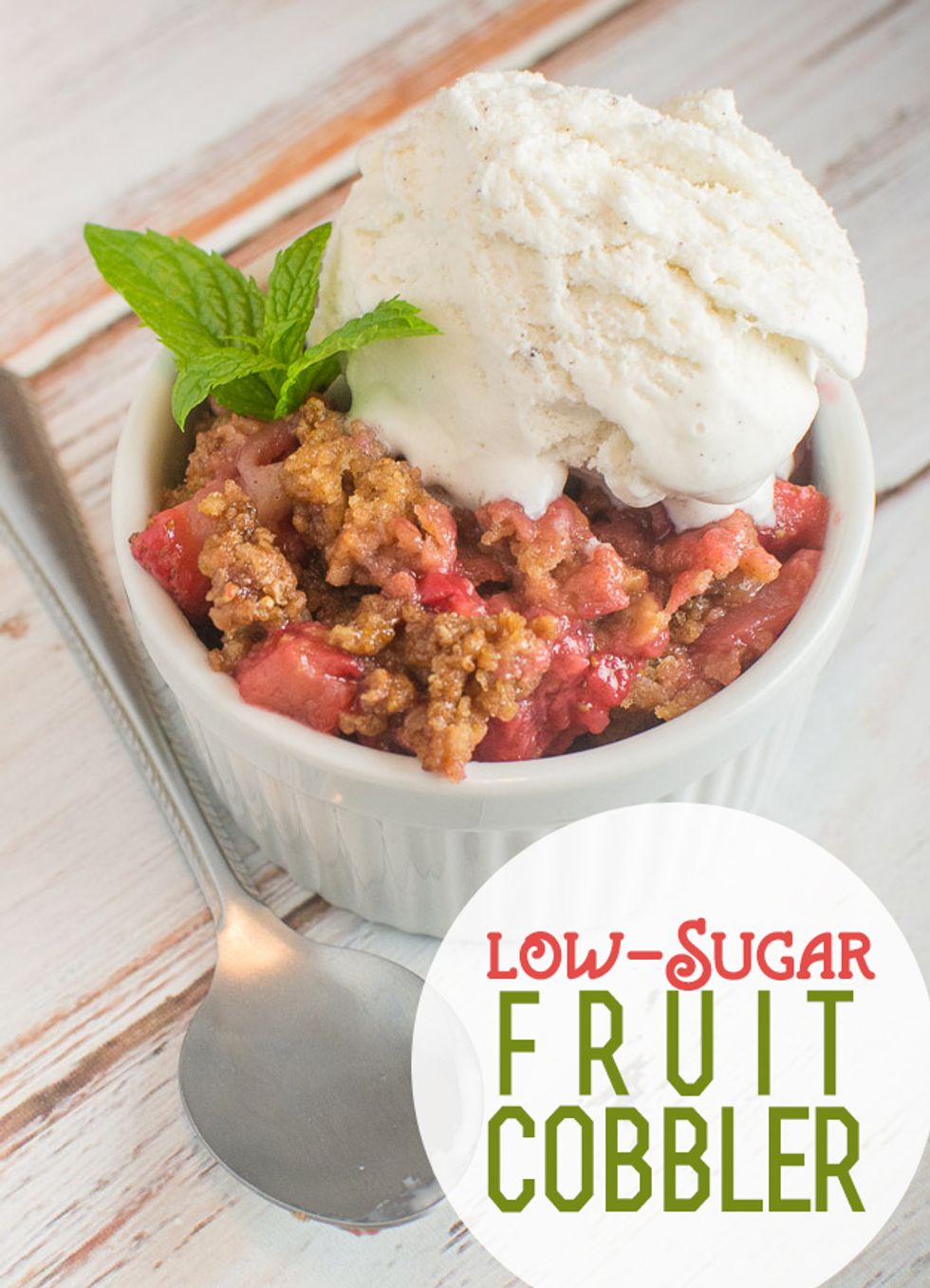 A healthier take on fruit cobbler! With only 345 calories, all natural sweeteners, and whole wheat flour, this is a smart tasty choice that can use any type of fruit! Super simple!
