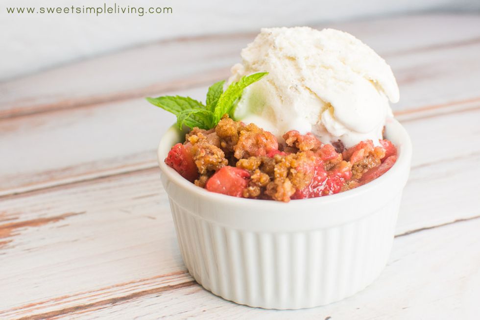 Put fruit in 8×8 baking dish and drizzle honey on top. Mix. In a separate dish mix the dry ingredients. Add wet ingredients and mix. Spoon crust mixture evenly over fruit and bake for 20-30 minutes at 350 degrees.
