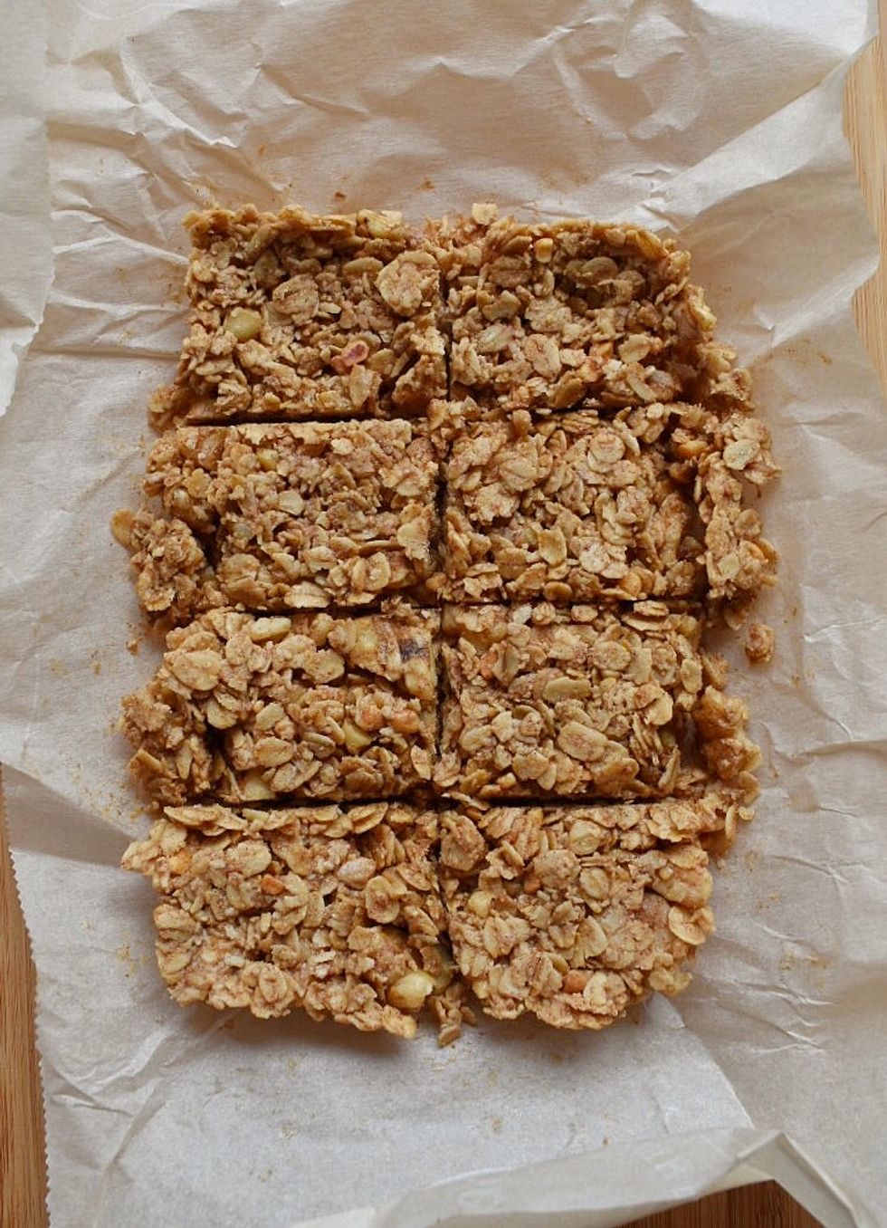 In a large mixing bowl, combine the oats, walnuts, coconut oil, crunchy peanut butter, maple syrup, cinnamon and...
