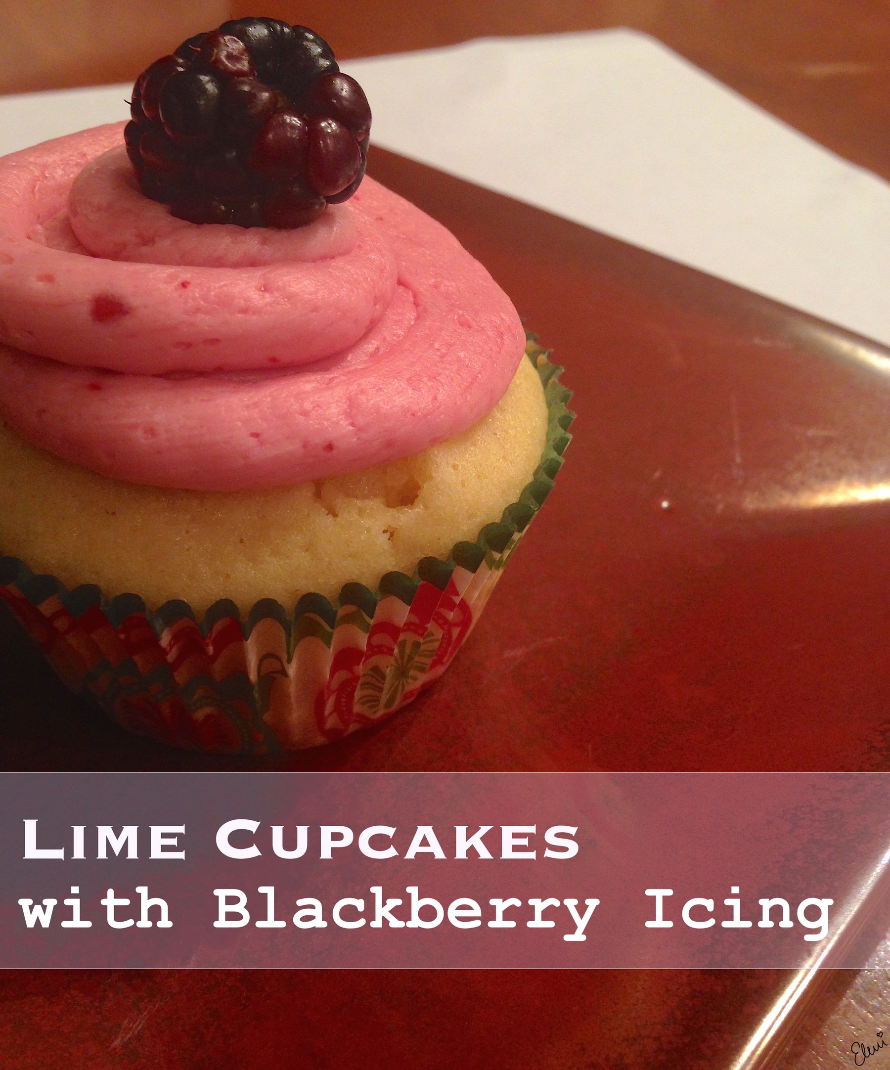 A lime cupcake with blackberry buttercream, perfect for the spring.