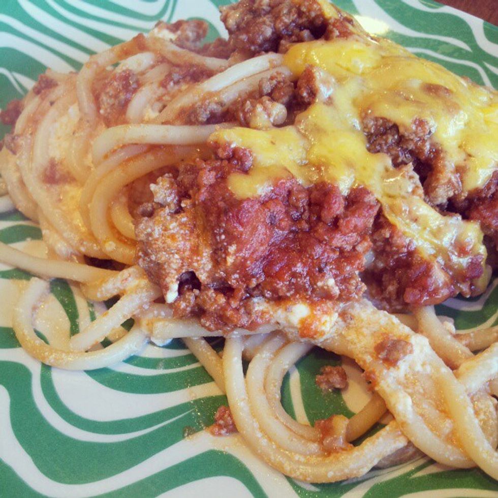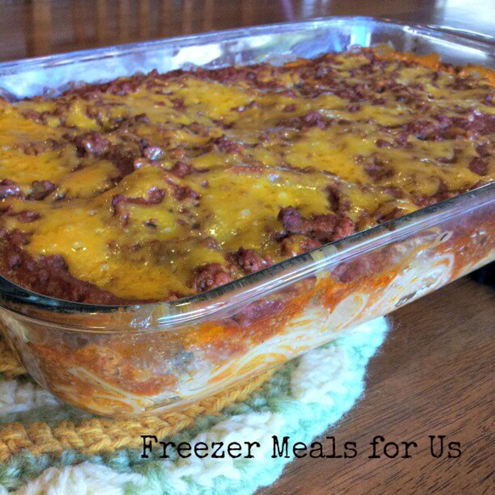 This tastes like the creamiest most wonderful spaghetti ever! Lots of cheesey goodness in every bite! Some are creamy and some are a little stringy. This bakes up in 45 minutes and tastes like you've worked for hours.