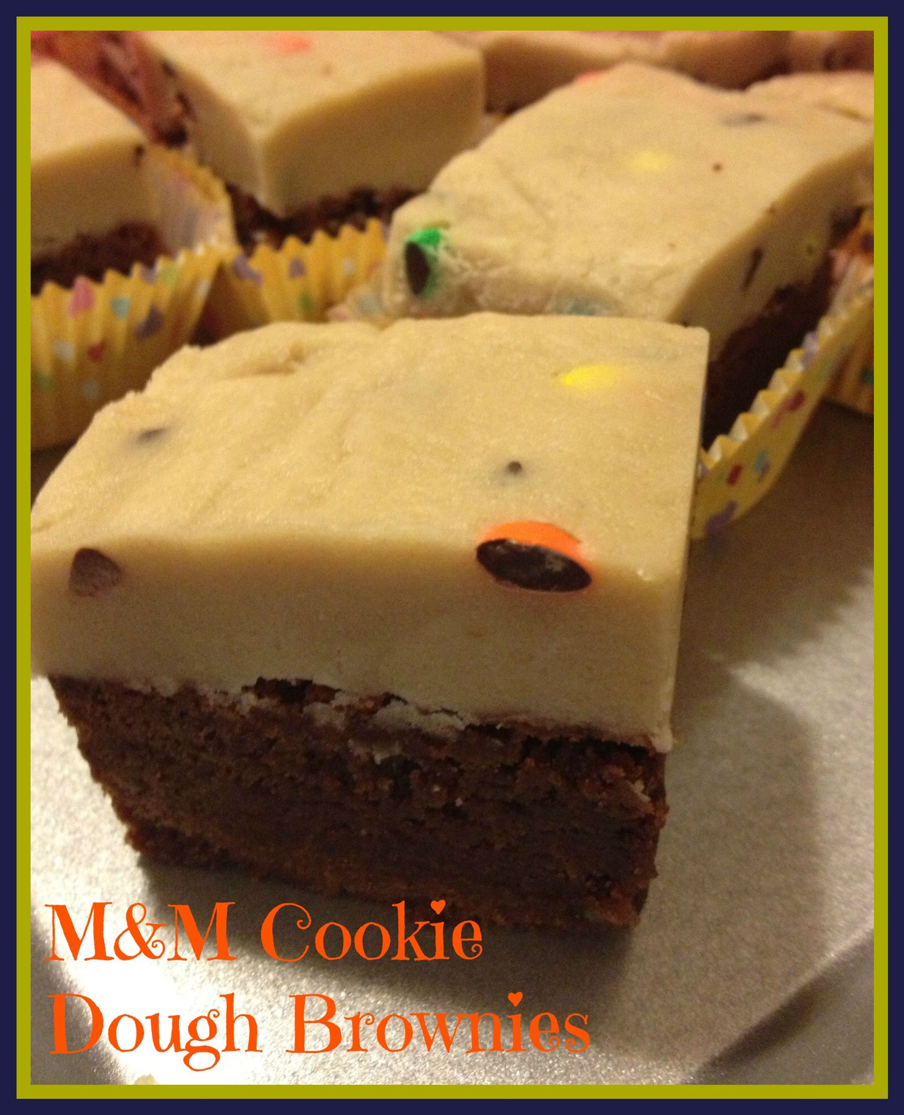 3. In a large bowl, use an electric mixer to combine the butter, sugars and salt until soft and creamy (1 to 2 minutes). Mix in the milk and vanilla. Sprinkle in the flour and mix in until combined. Stir in the mini M&M's. Scoop the cookie dough onto the top of the brownies and spread onto the cooled brownie layer. Wet your hands and pat the cookie dough on top in a even layer.