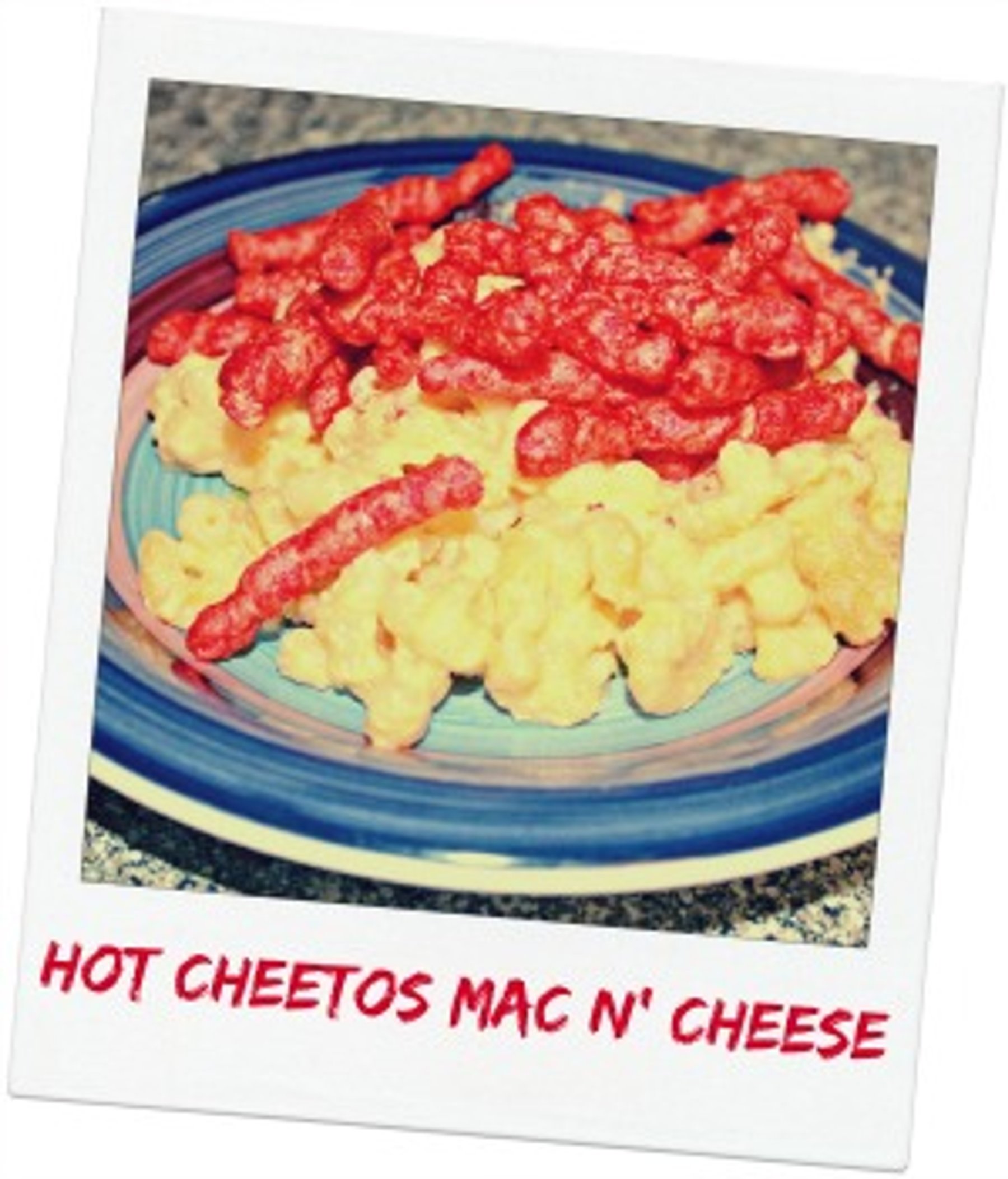 Mac n' Cheese with a twist! It's a wonderful mac n' cheese recipe garnished with flamin' hot cheetos!