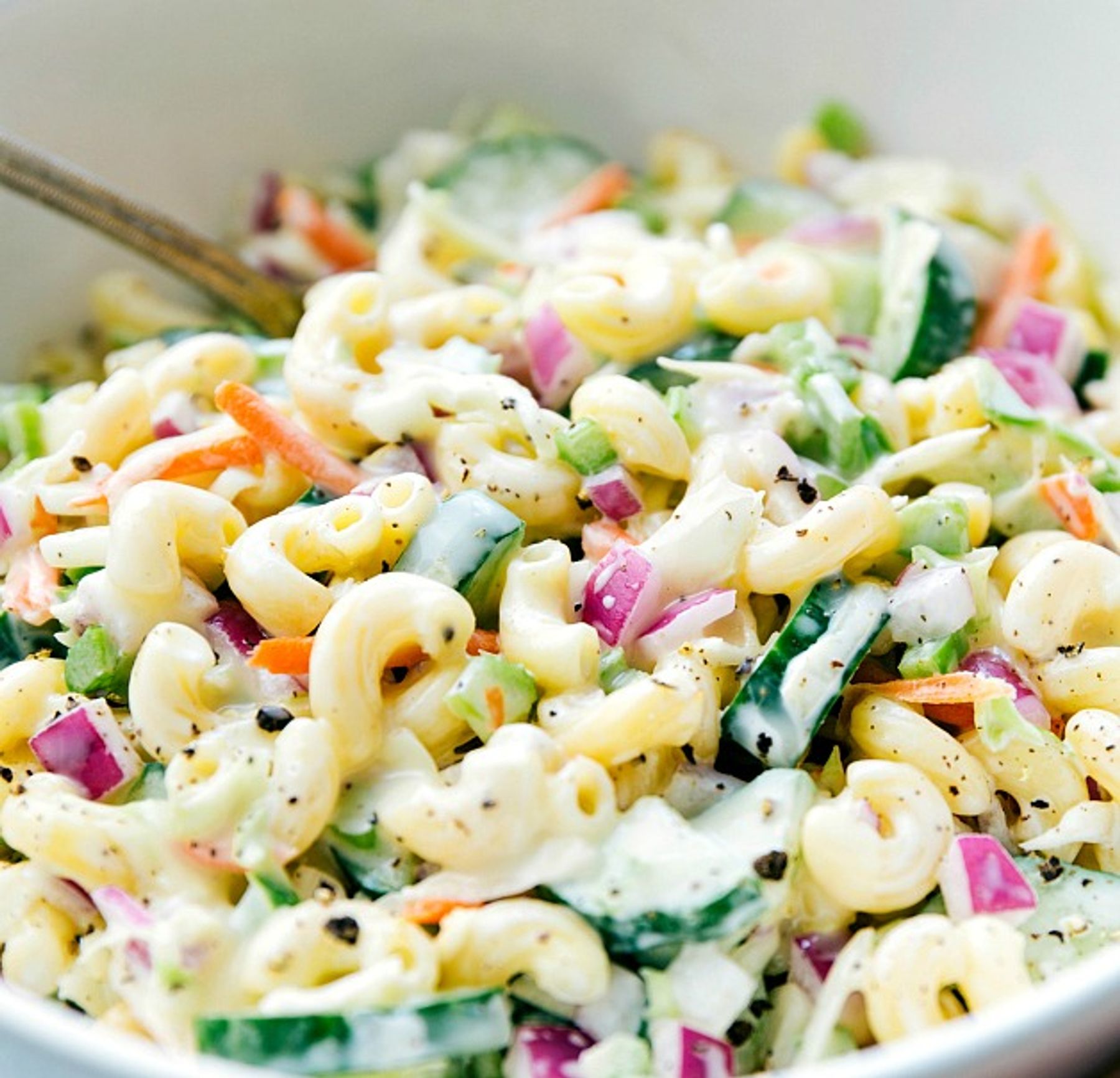 1. Cook the macaroni noodles according to package directions; drain and rinse in cold water and then transfer to a large bowl. Toss with 1/2 tablespoon apple cider vinegar.