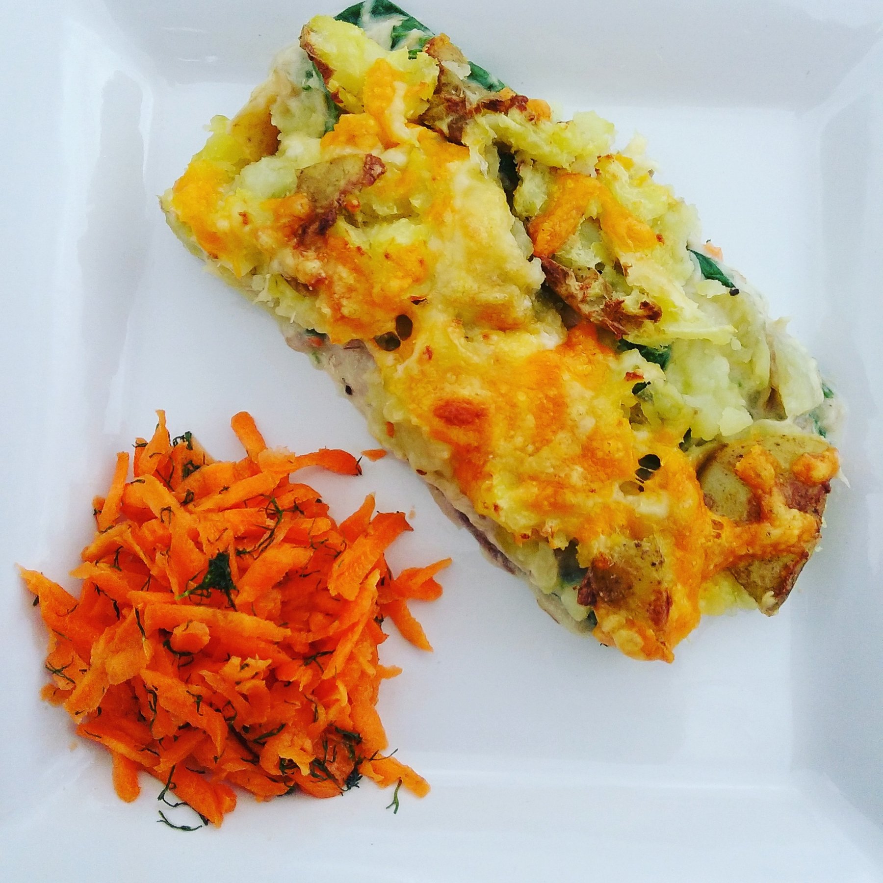 Mackeral and Spinach pie with crushed new potatoes