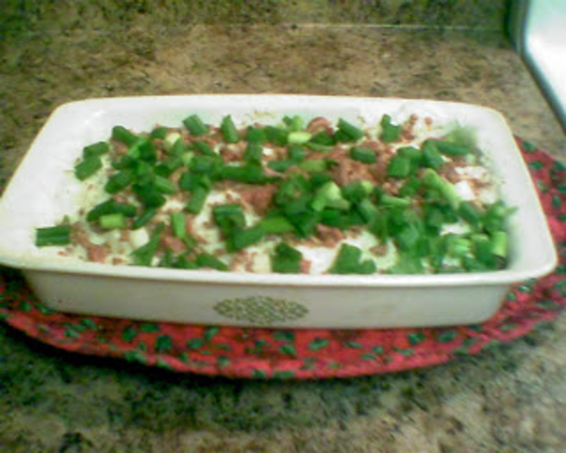 6 bacon strips, chopped (I used precooked chopped bacon bits found in the salad topping section of walmart)
