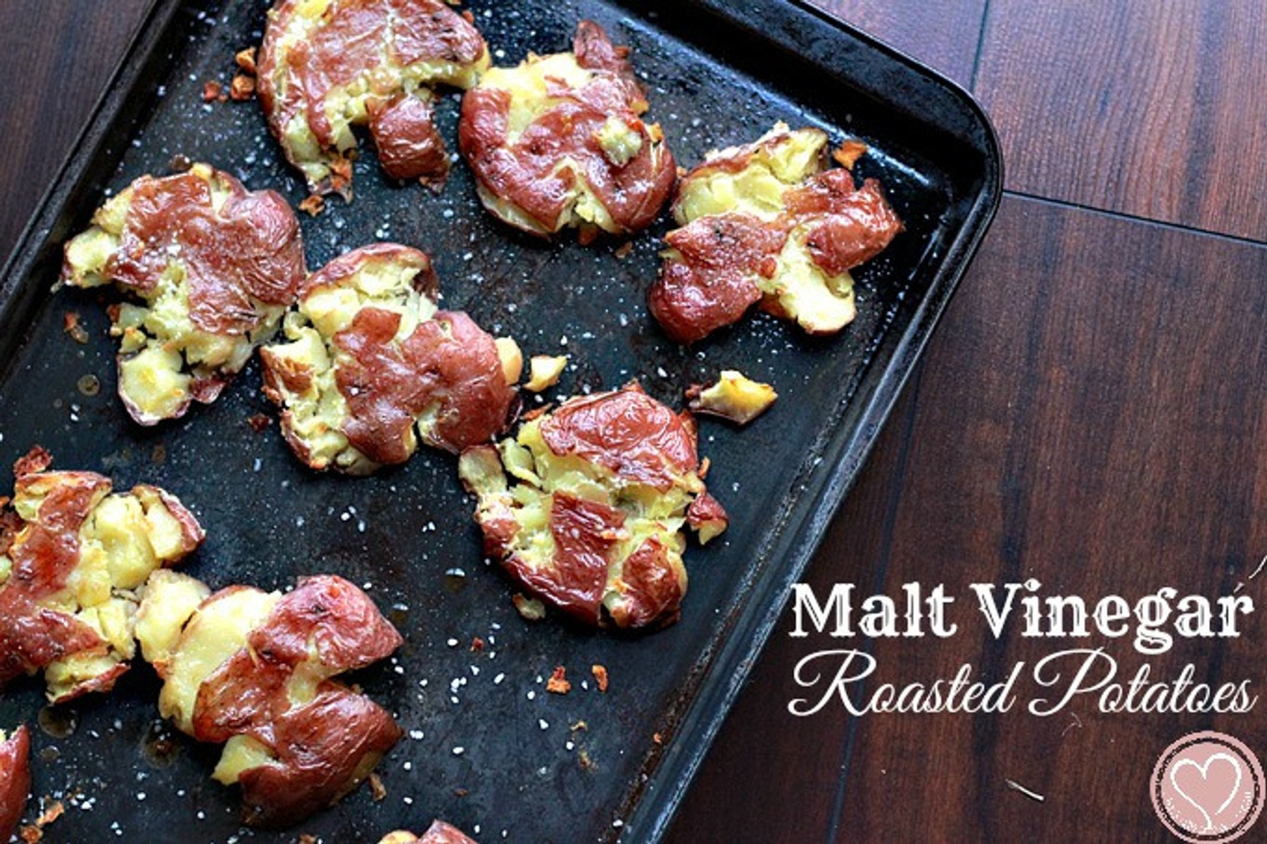 The potato is used very differently in Cuban recipes, but I didn’t like them in any variety as a kid. And even when used (for Fricasse, for instance) I would avoid the chunks of potato like the plague. In fact, my step-mom still teases me about how I would cry at the sight of a baked potato hitting my dinner plate. So this Roasted Malt Vinegar Potatoes recipe is not one I would have liked as a kid. Good thing I’m not a kid anymore, because these little bites were super yummy! Boiled, roasted, t