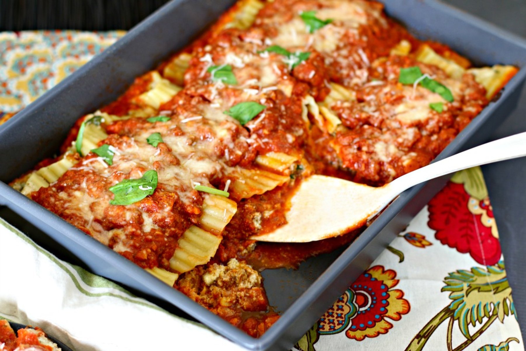 Mama’s Meaty Manicotti is deliciously rich and creamy Italian seasoned meat and three-cheese gooey ricotta spinach stuffing.