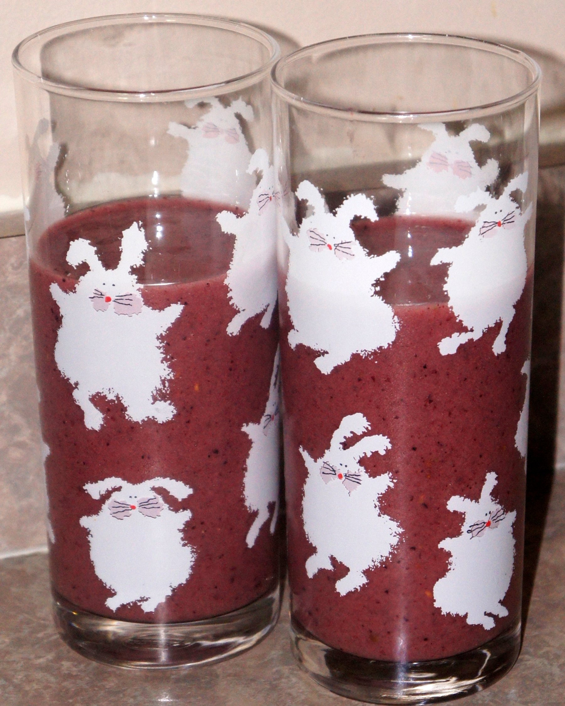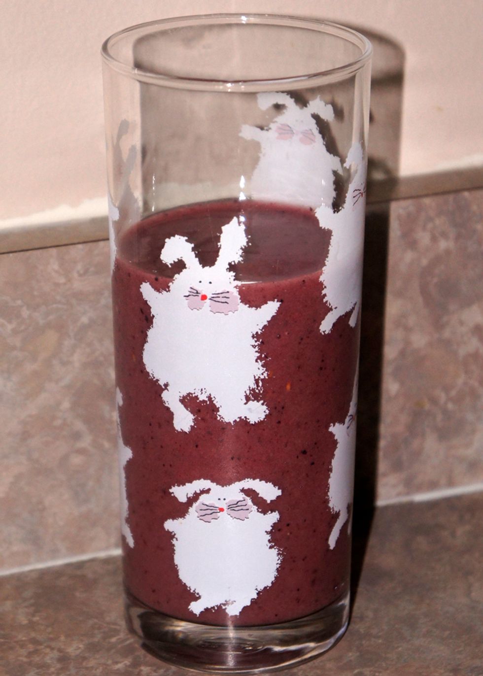Put all ingredients into a blender and blend until everything is mixed and smooth. Pour into glasses.