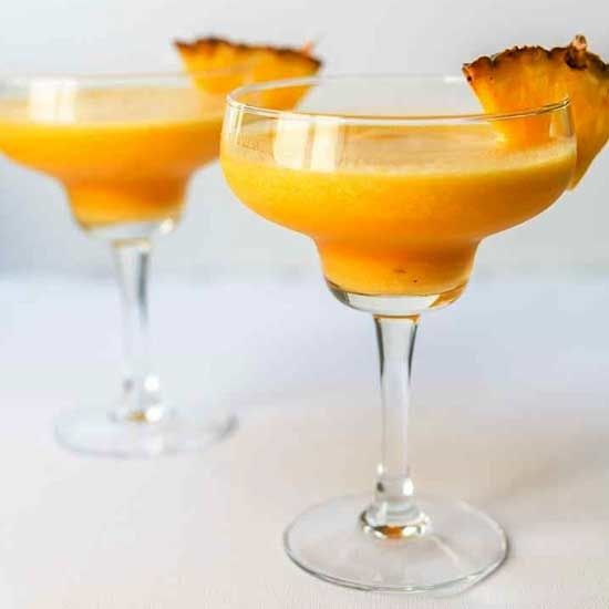 This mango daiquiri cocktail is easy to make with fresh pineapple, mango, lemon, Bacardi and lots of crushed ice. It is a perfect drink for the weekend or a party.