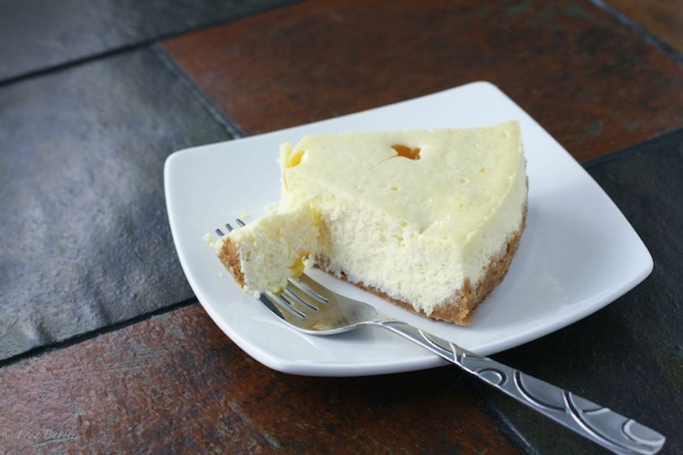Smooth, creamy cheesecake with a little sweet heat from swirls of mango habanero puree.