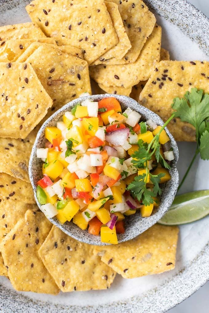 A perfect mango salsa recipe to add some sweet and spicy flavors to your dishes! We love this healthy condiment on chicken, fish, or with chips. Try making this mango salsa recipe your own by adding more or less spice, or experimenting with additional vegetables. Tips below!