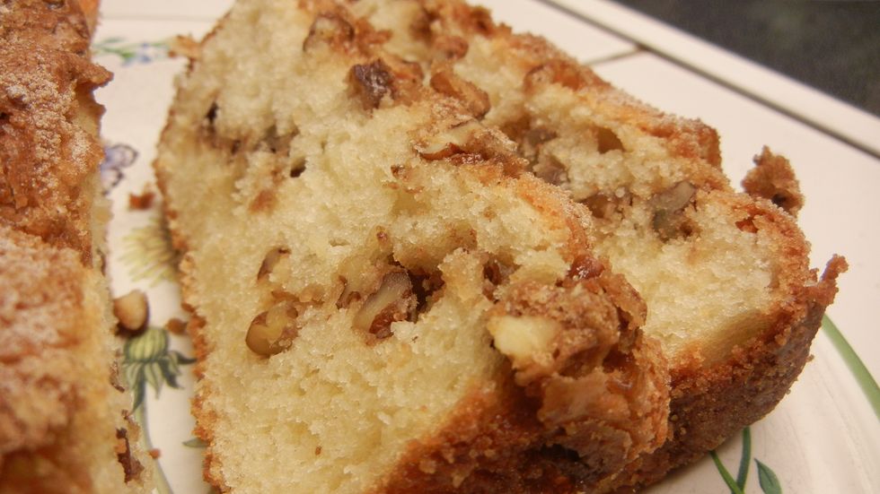 I made up this recipe based on ratios from here http://www.cookingforengineers.com/article/280/Analyzing-a-Baking-Recipe and very loosely adapted from the Cranberry Almond Streusel Cake on a cup of mascarpone. Basically, I had pecans to use up, so of course I had to add a streusel on top. Within a day of making this, it was completely gone, in a joint effort by my mother and I. Enjoy!