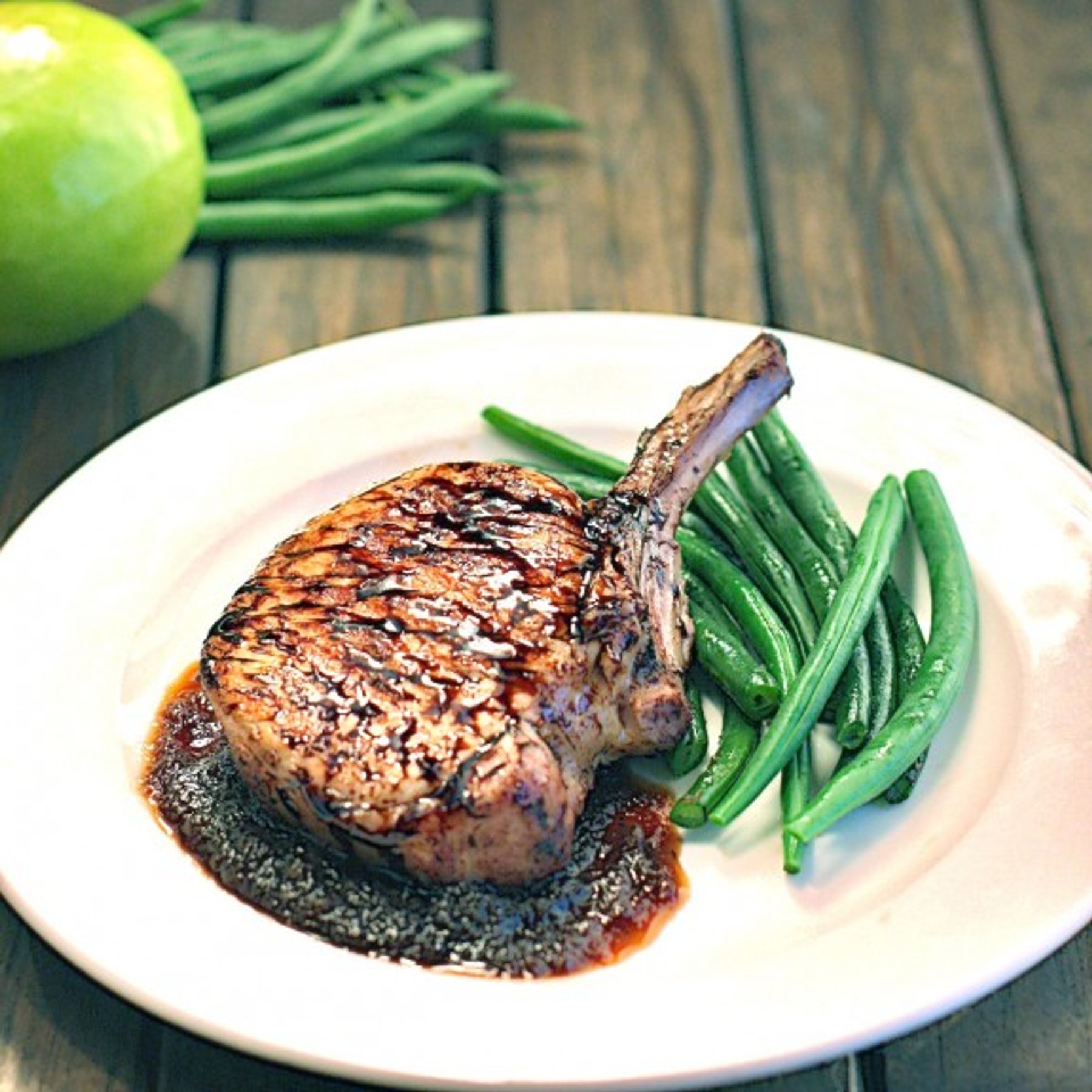 Season chops with salt and pepper. Place chops in a shallow dish and our balsamic vinaigrette over chops. Place in refrigerator an marinate for at least 30 minutes.