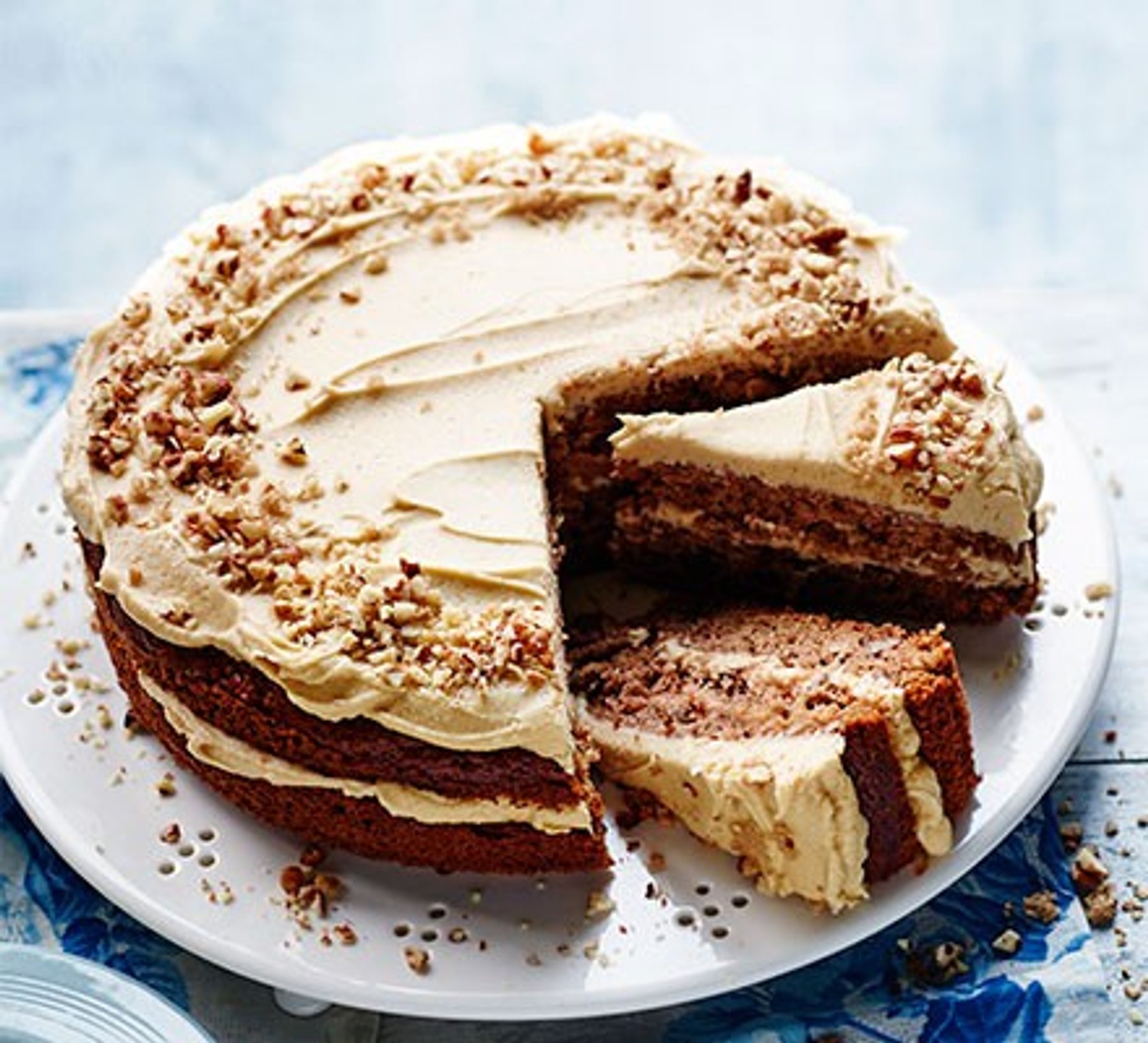 This maple, apple and pecan cake with apple sauce has a beautiful texture. It makes a perfect centrepiece dessert for the dinner table