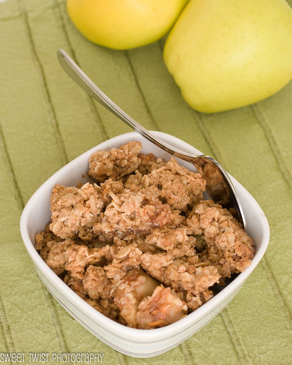 Cinnamon sugar apples, mixed with cheese topped with a maple oat crumble