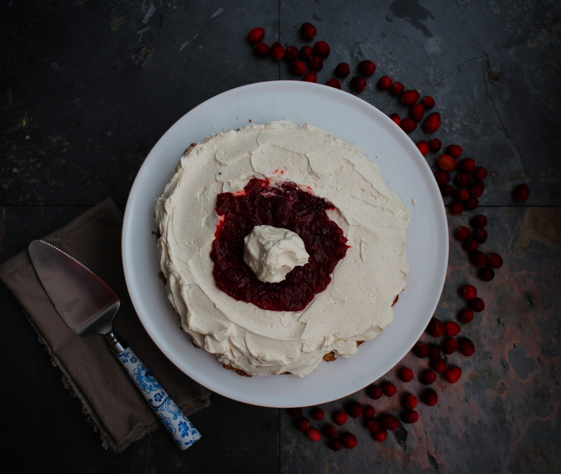 Maple Cream Pie with a Frosted Citrus Cranberry Center & Gluten Free Nut and Oat Crust