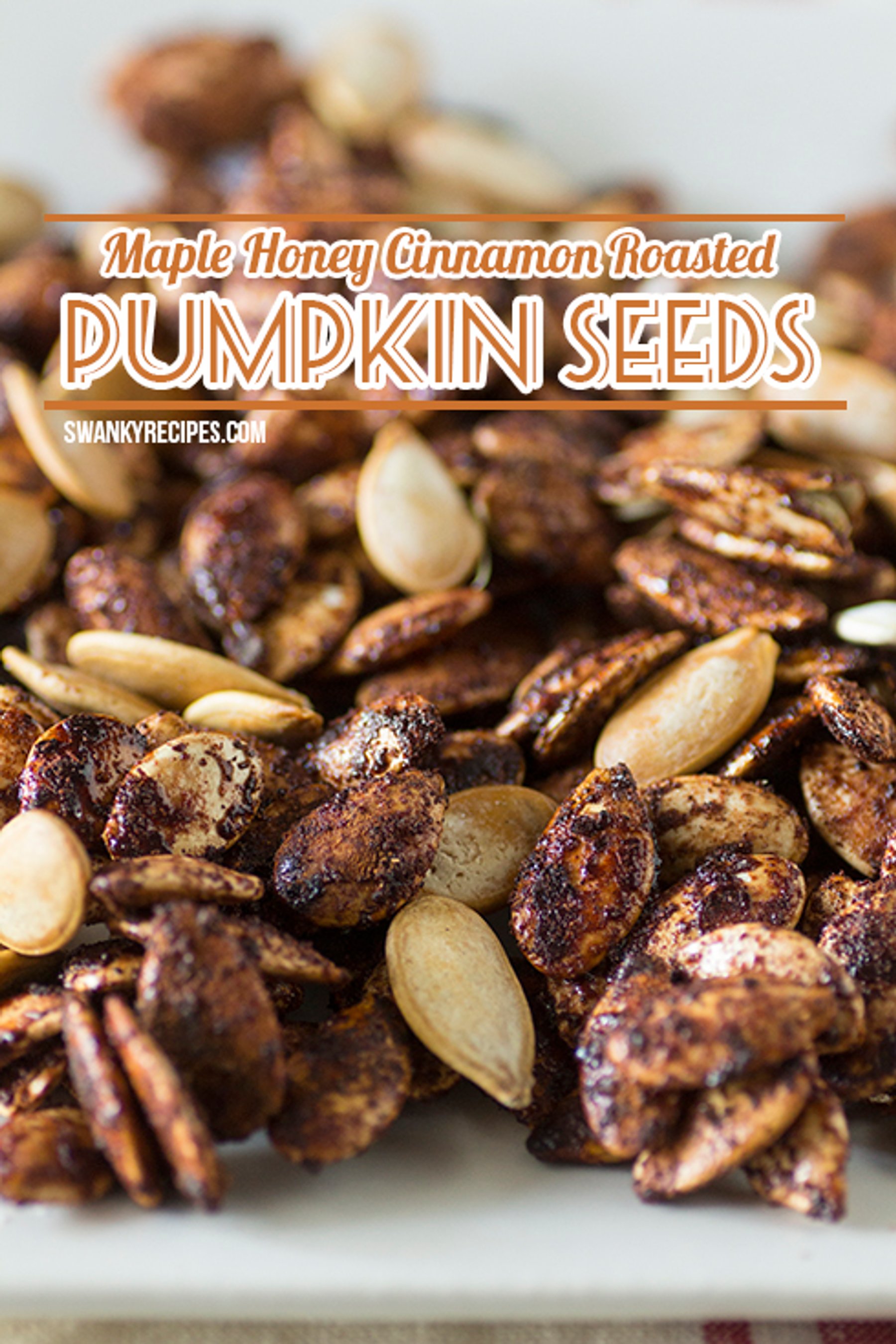 Cinnamon pumpkin seeds sweetened with maple syrup and honey.
