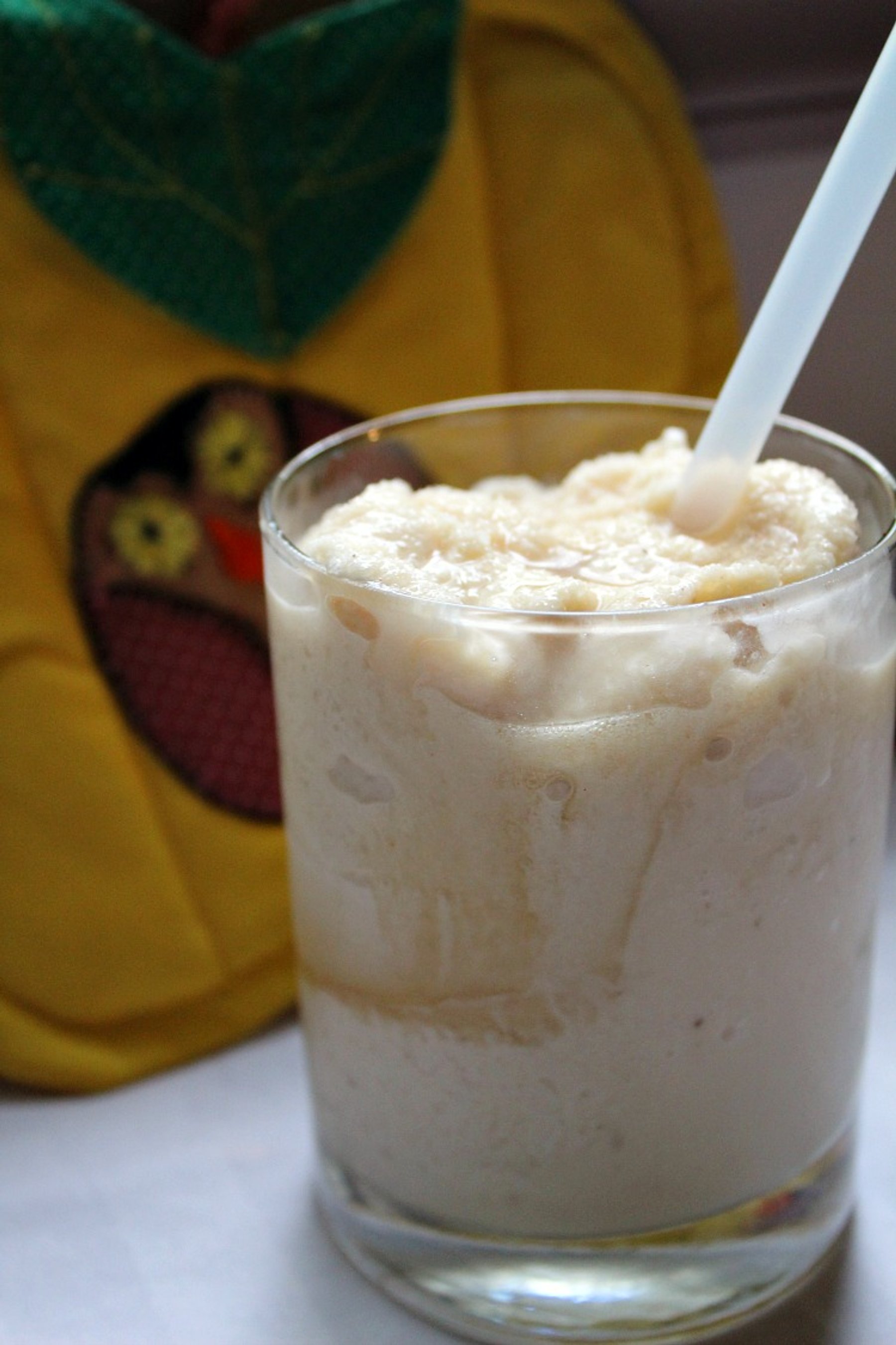 Refreshing smoothie made with bananas and peanut butter, and sweetened with pure maple syrup.