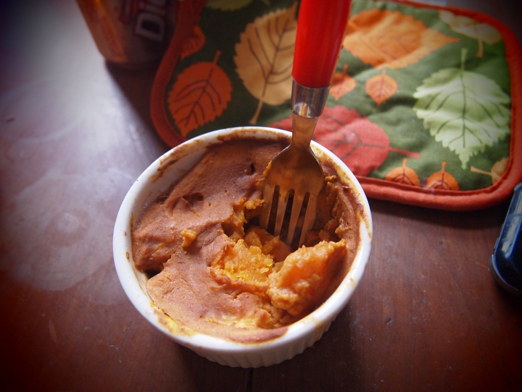 Soft cinnamon flavors encase butternut squash with a maple pumpkin pie topping crust in this single serving, filling dish.