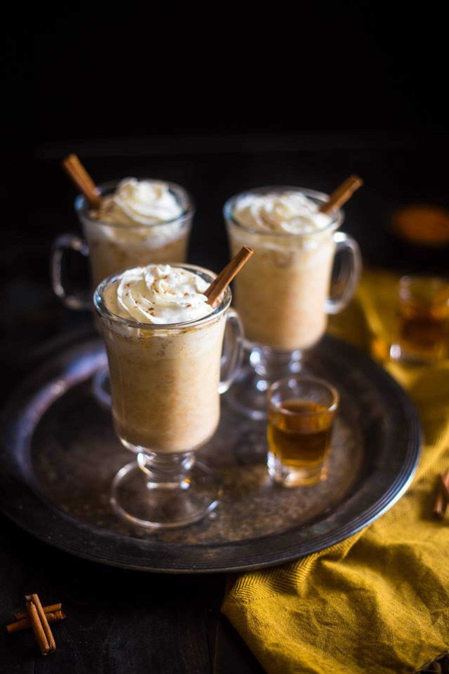 This maple pumpkin bourbon steamer is made of almond milk that is mixed with pumpkin puree, naturally sweetened with maple syrup and finished with bourbon. It’s an easy, cozy drink for the fall!