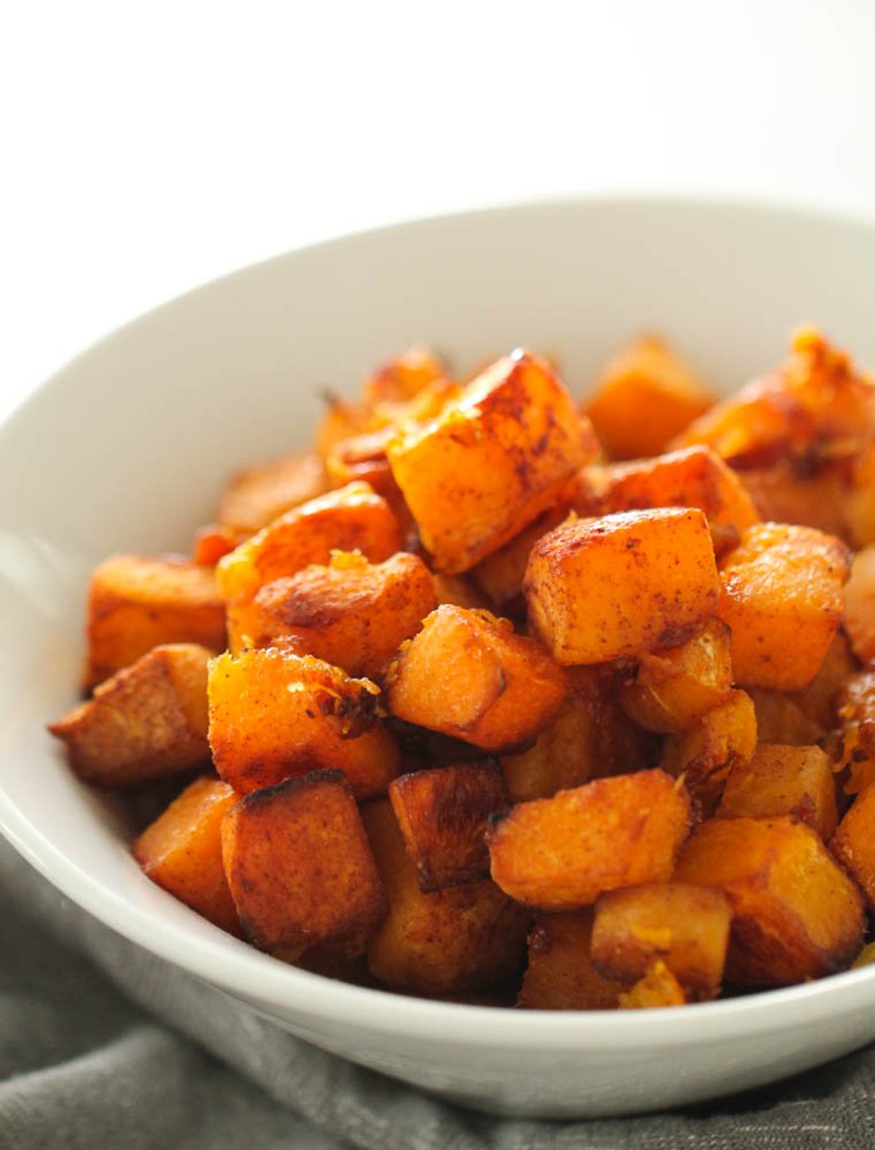 Spread squash in an even layer on prepared pan and drizzle on olive oil and maple...