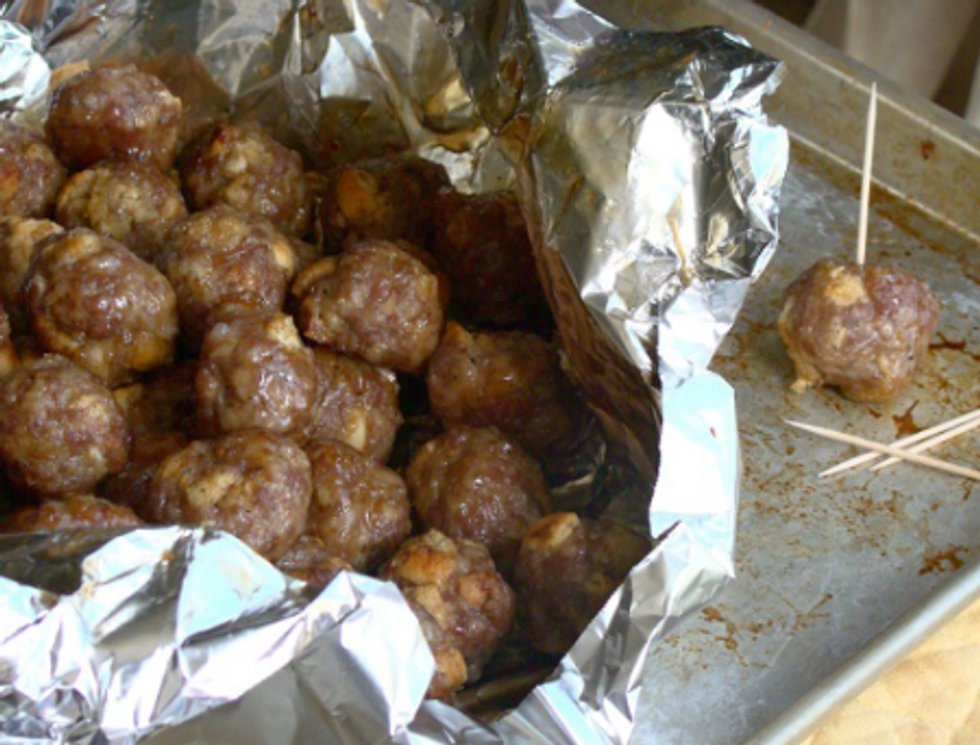 In a large bowl, mix raw sausage, raw egg, & syrup together.
