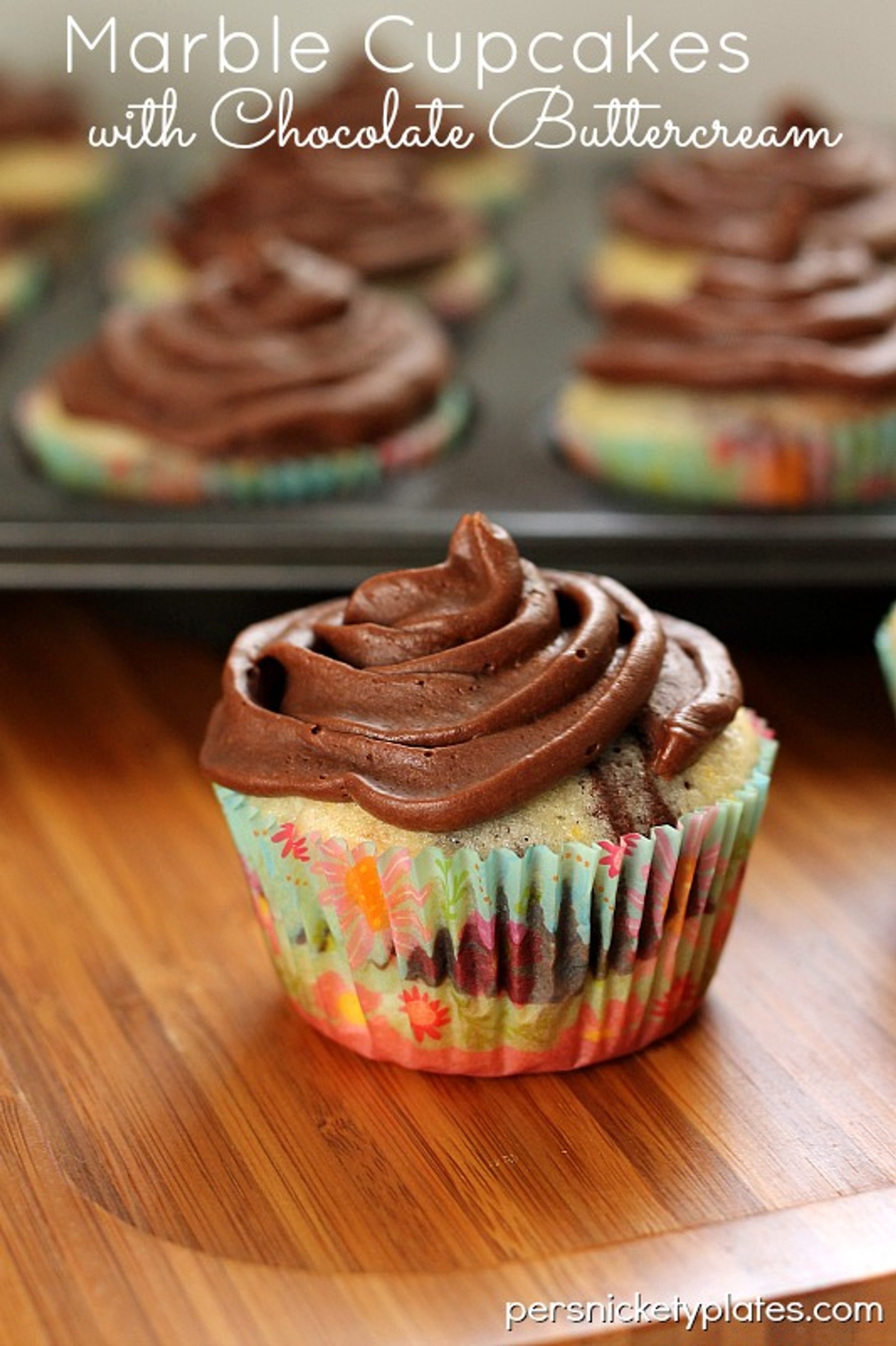 Marble Cupcakes with Chocolate Buttercream Frosting