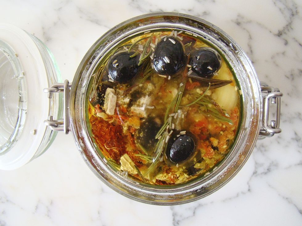These olives and feta cheese are extremely good on salads, crostini, pizza or with some elegant appetizers. The ones that you can buy at the grocery store are kinda expensive, so you can make them very easily at home, and cheaper.