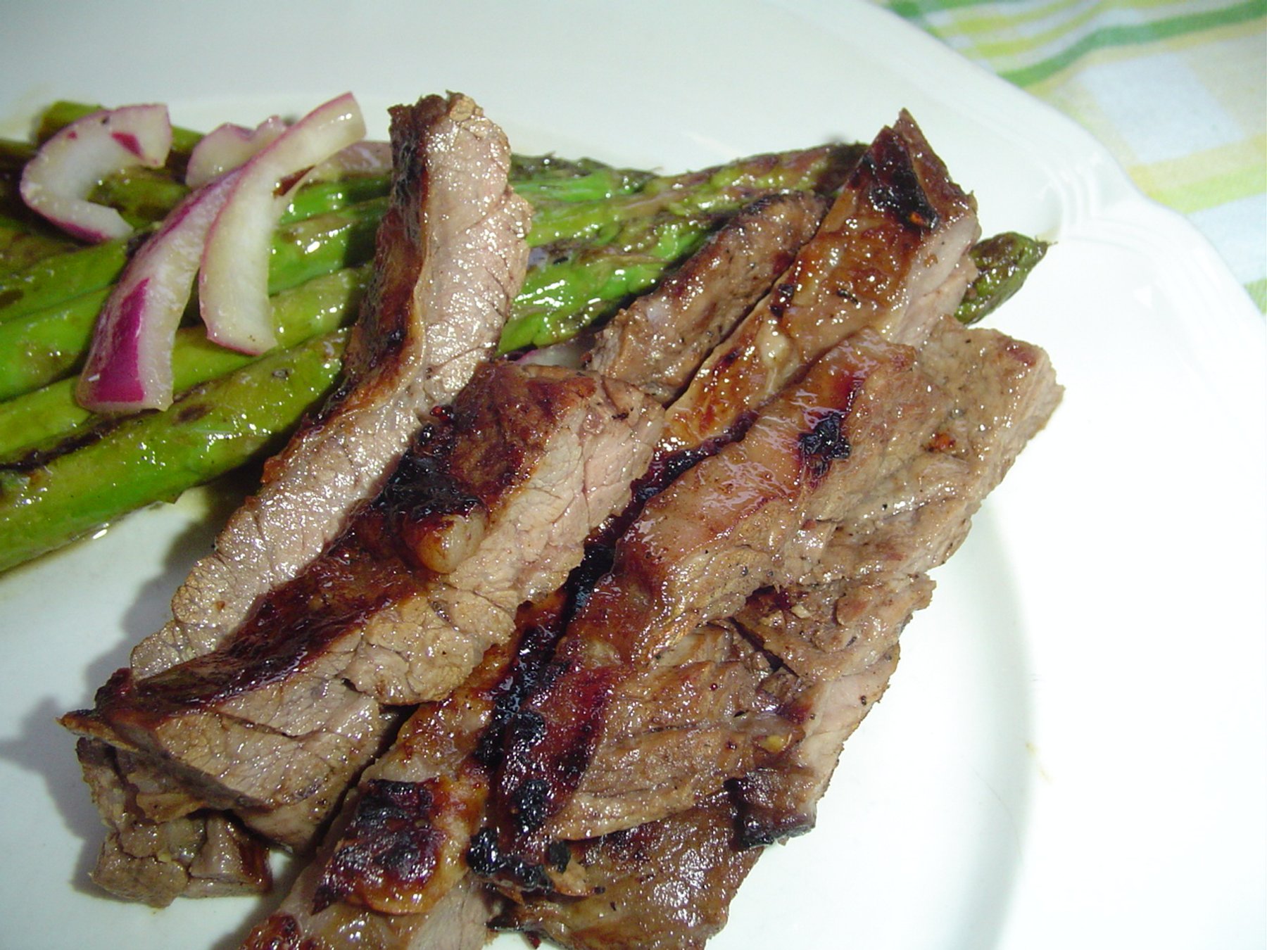 It's the first day of summer and I decided to celebrate by breaking out the grill. With meat getting more expensive, skirt steak is still fairly reasonable. It can be tough so I marinated it for several hours before placing it on the grill. I kept the marinade simple and it was a good choice. The marinade enhanced the meat's flavor while making it very tender. Success!