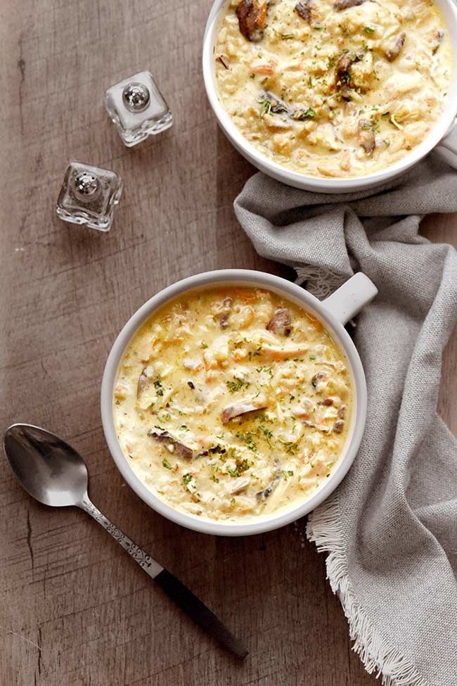 This Marsala Chicken Wild Rice Soup is a mushroom lover's dream! You'll love this easy, earthy, creamy chicken and wild rice soup recipe. Done in 35 mins!