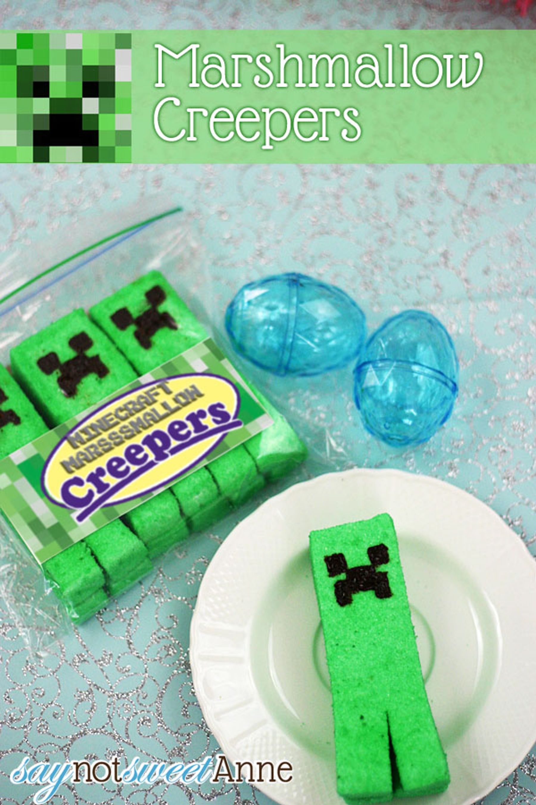 Last April fools day ThinkGeek pulled a prank about Marshmallow Creeps. These were Peeps that looked like Creepers from the popular indie game Minecraft. Well, needless to say it went over well, and people were sorely disappointed to discover that they could not actually purchase them. For months I've been thinking about making my own marshmallows. So when I remembered these little guys , I knew just what to make! And let me tell you, these were so easy. All this time I was putting off mak
