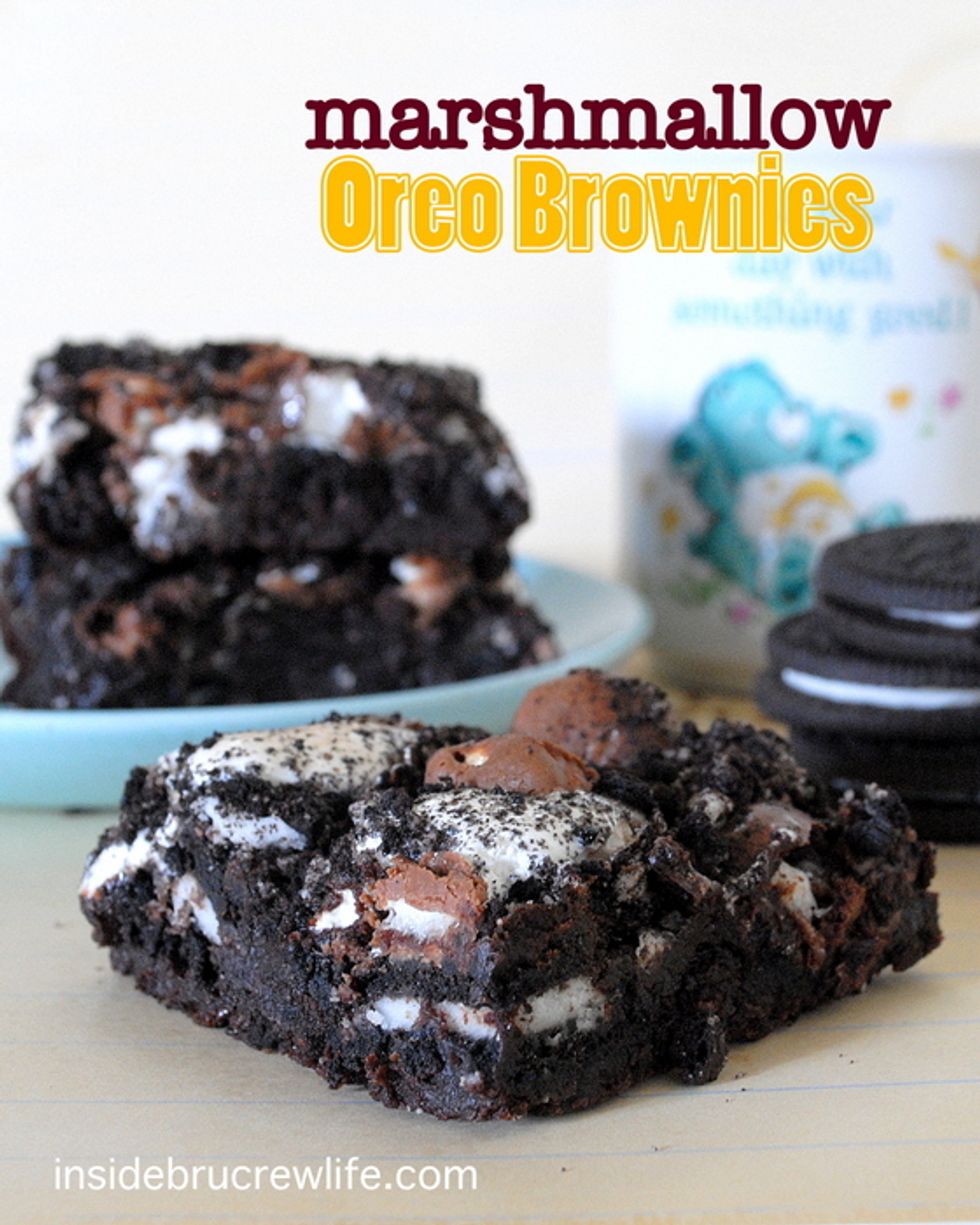 Fudge brownies filled with Oreo chunks and marshmallow cream.
