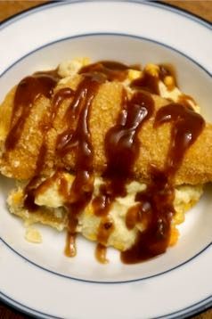 Mashed potatoes topped with corn, cheese, breaded chicken and topped with gravy for a comforting and delicious casserole.