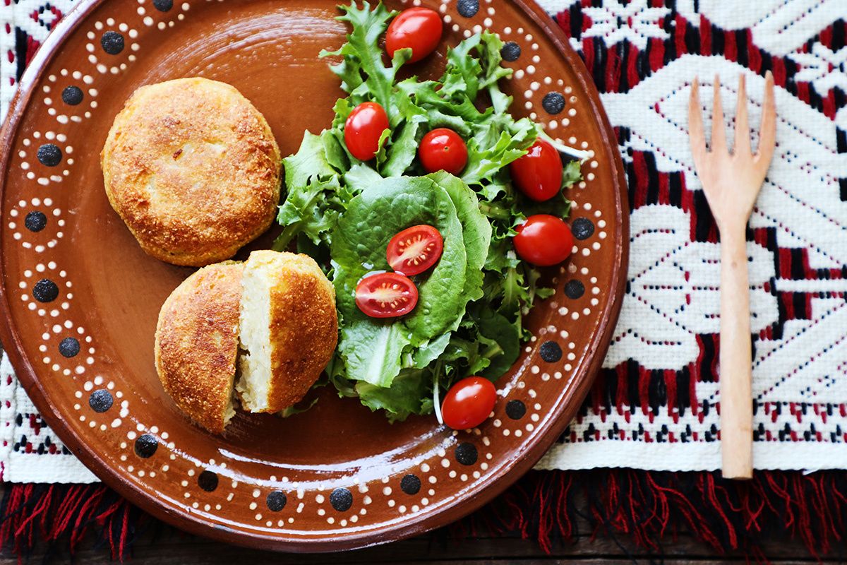 Mexican potato croquettes (patties) filled with queso fresco.