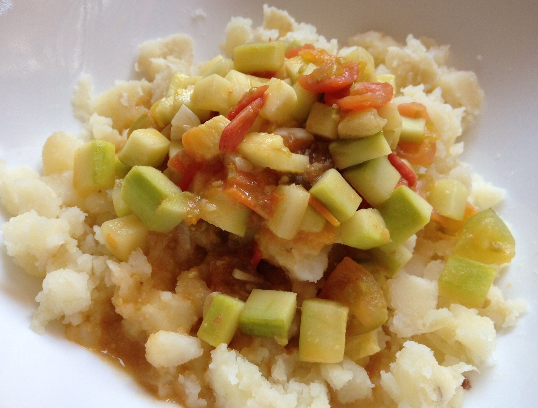 Mashed Potato with Miso Tomato Zucchini