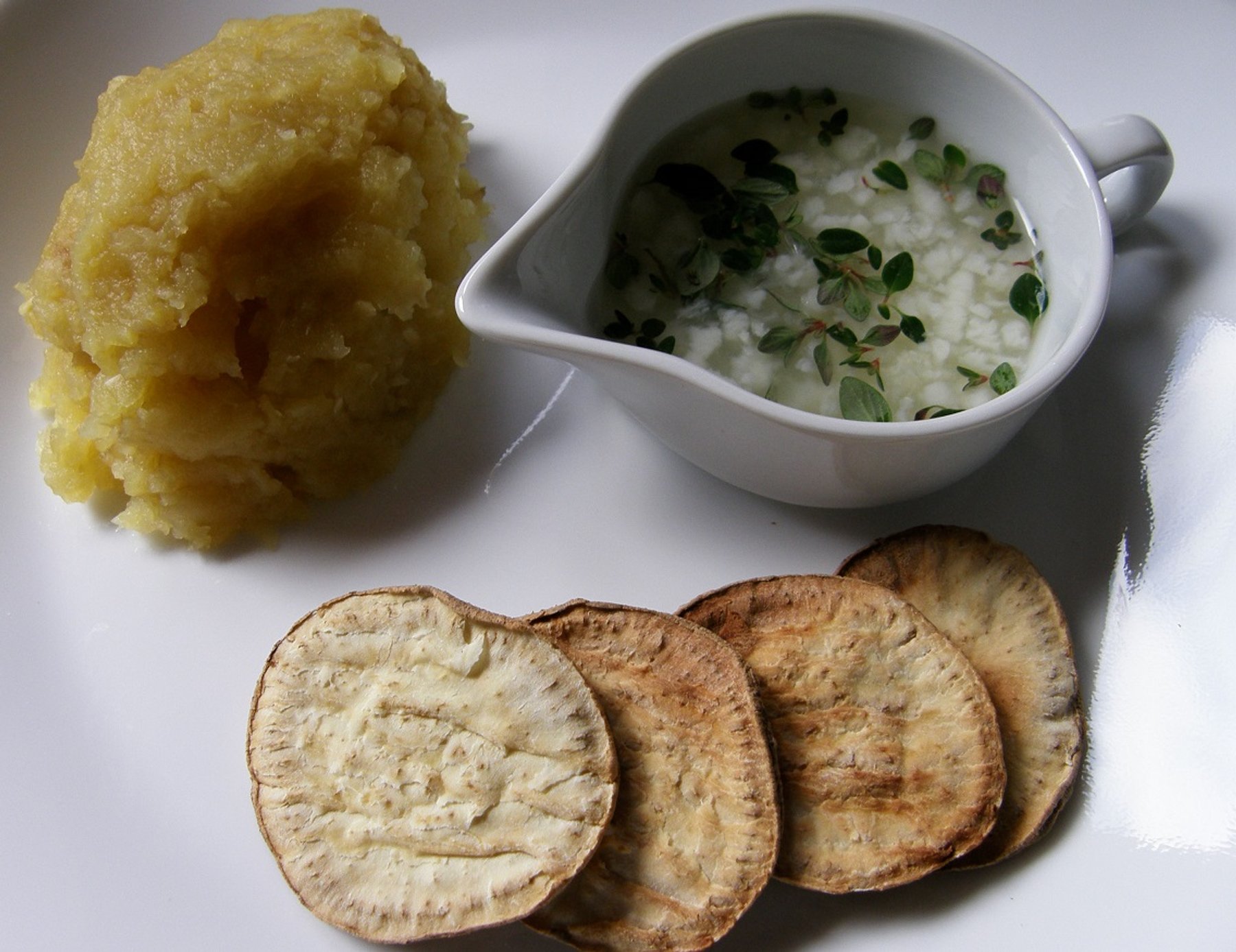 Mashed Yam and Baked Yam with Lemon Thyme Dressing